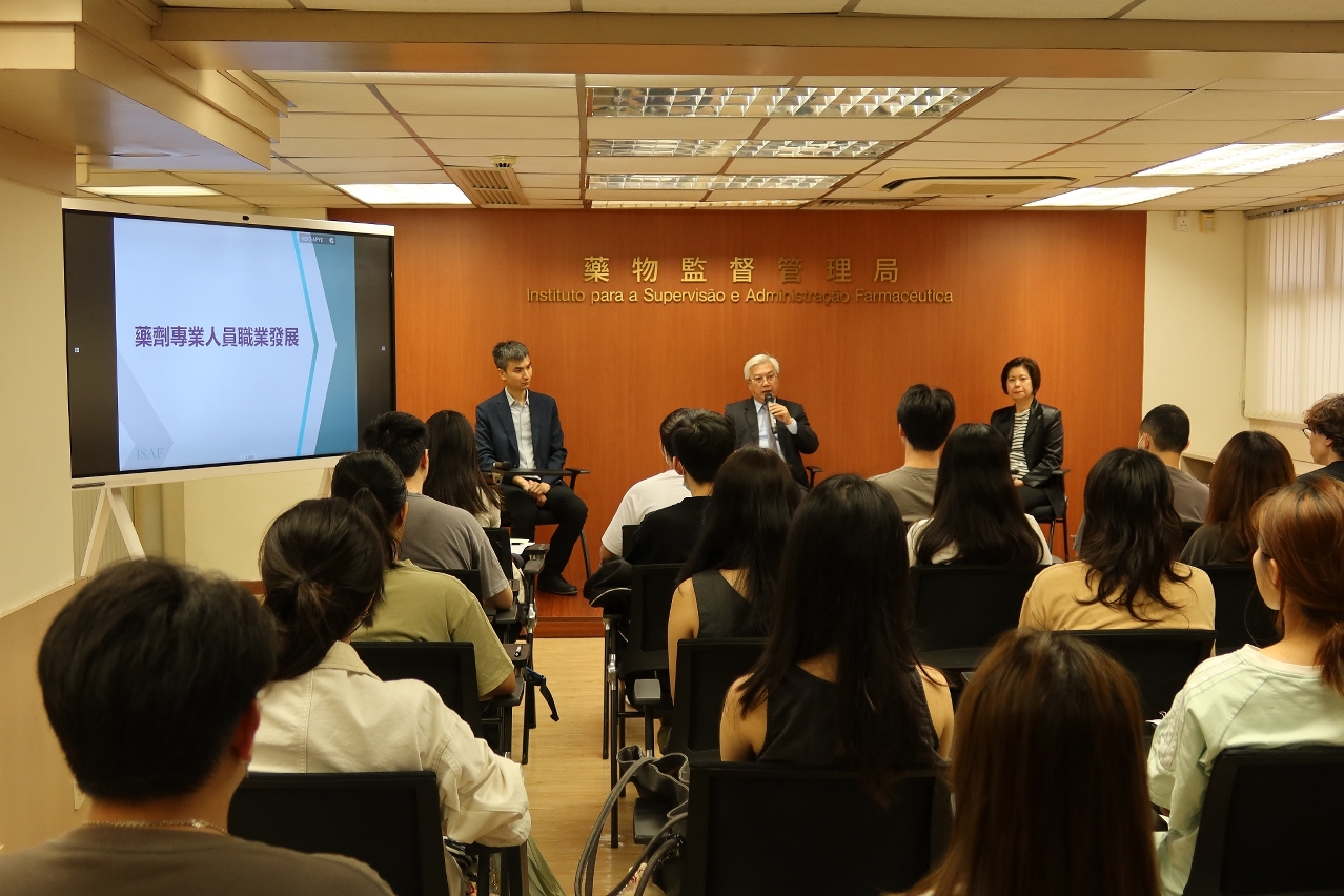 O Instituto para a Supervisão e Administração Farmacêutica (ISAF) realizou, no dia 26 de Agosto, uma sessão de intercâmbio para os estagiários de profissão farmacêutica do ano 2025/2026, com o objectivo de apresentar aos farmacêuticos, farmacêuticos de medicina tradicional chinesa e ajudantes técnicos de farmácia, que iniciarão os seus estágios no dia 1 de Setembro, a situação actual da profissão farmaceutica em Macau, esperando-se que os estagiários, através dos estágios, familiarizem com o sistema e funcionamento de saúde de Macau, estabelecendo uma base sólida para o exercício da profissão no futuro.