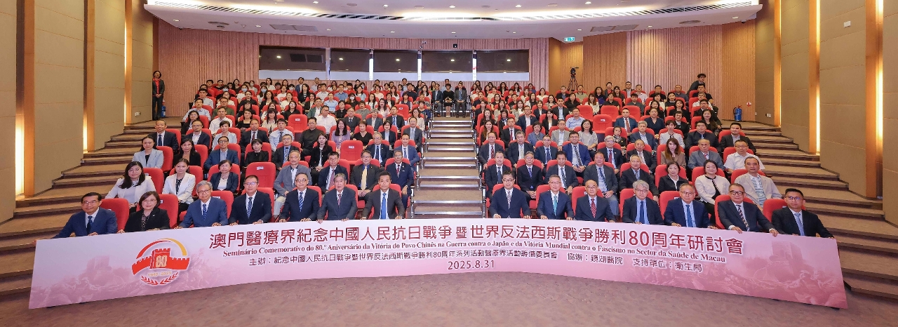 Realizou-se no Domingo (dia 31), com sucesso, o “Seminário Comemorativo do 80.º Aniversário da Vitória do Povo Chinês na Guerra contra o Japão e da Vitória Mundial contra o Fascismo no Sector de Saúde de Macau” no Edifício Médico Especializado Dr. Henry Fok do Hospital Kiang Wu, em Macau. O seminário foi organizado pela Comissão Organizadora das Actividades do Sector de Saúde em comemoração do 80.º Aniversário da Vitória da Guerra de Resistência do Povo Chinês contra o Japão e da Vitória Mundial contra o Fascismo (adiante designada por Comissão Organizadora das Actividades Comemorativas), com a colaboração do Hospital Kiang Wu e o apoio dos Serviços de Saúde. O evento contou com a presença de mais de 200 representantes do sector de saúde de Macau e decorreu num ambiente animado.