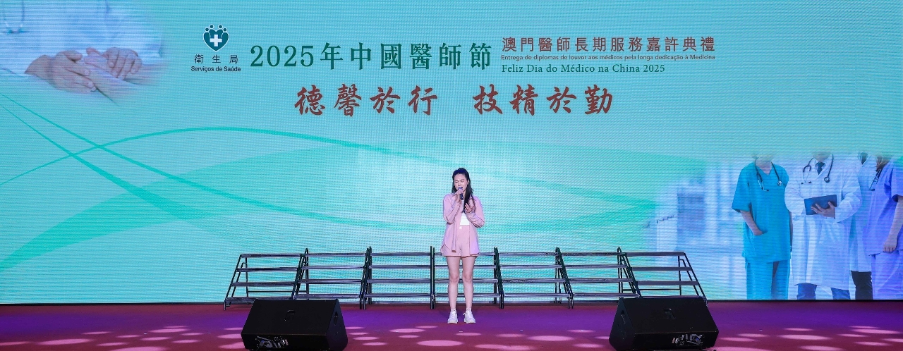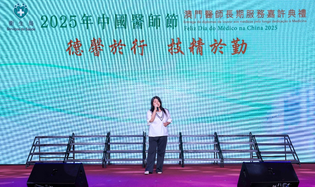 Em seguida, o Director dos Serviços de Saúde, Lo Iek Long; o Subdirector dos Serviços de Saúde, Cheang Seng Ip; o Subdirector dos Serviços de Saúde, Chan Weng Wa; e o Subdirector dos Serviços de Saúde, substituto, Tai Wa Hou, entregaram certificados de louvor aos médicos de Macau com mais de 50 anos de serviço e aos médicos de Macau com mais de 30 anos de serviço. A cerimónia contou com a presença de mais de 200 pessoas, tendo sido organizados vários espectáculos culturais e artísticos, incluindo danças e canções. Antes do encerramento da cerimónia, os dirigentes dos Serviços de Saúde e os convidados cantaram em conjunto, apresentando votos de felicidades a todos os médicos de Macau, o evento decorreu num ambiente acolhedor.