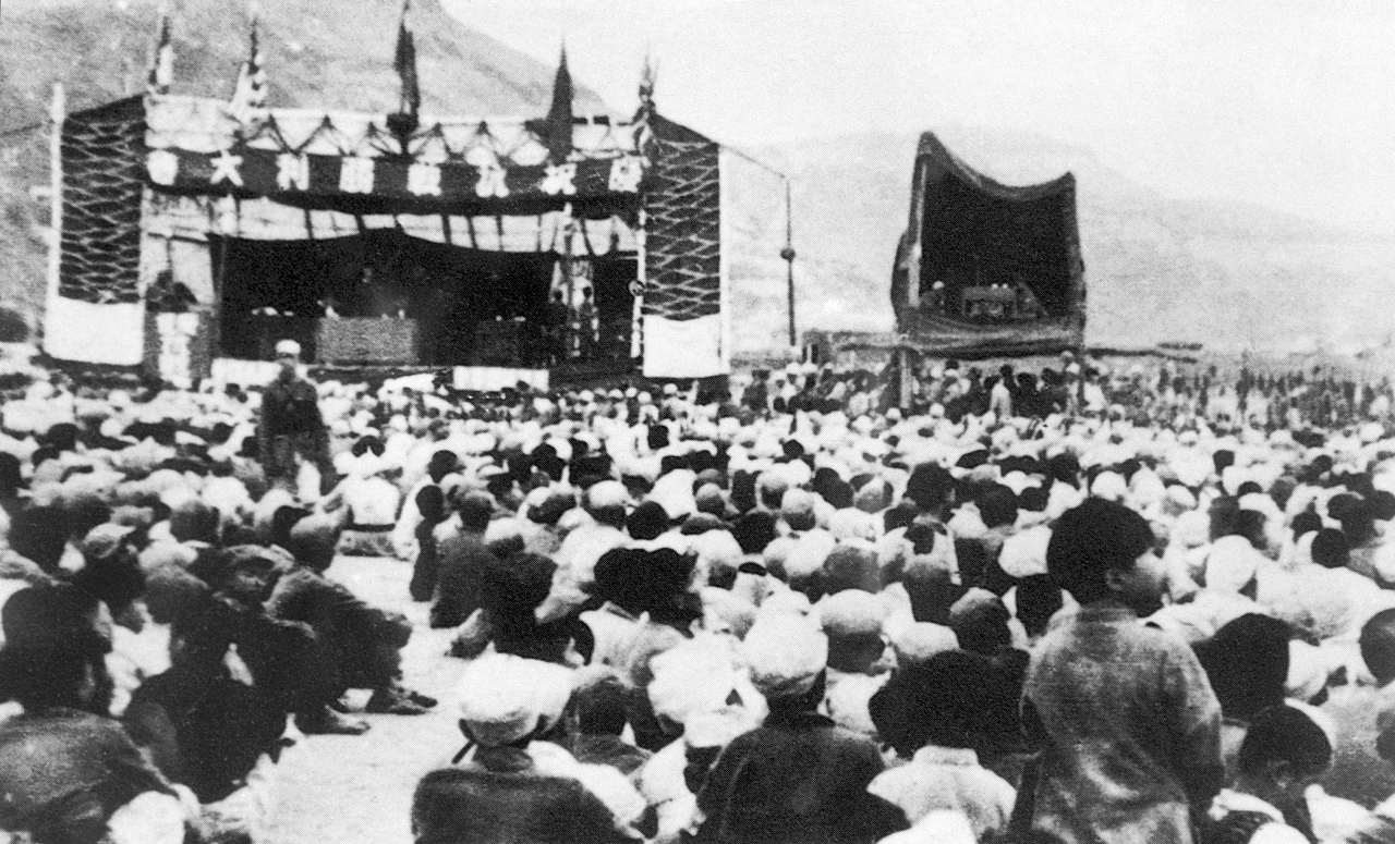 • Celebração da vitória na Guerra de Resistência em Yan'an (Imagem fornecida pelo Museu Comemorativo da Guerra de Resistência do Povo Chinês contra a Agressão Japonesa)