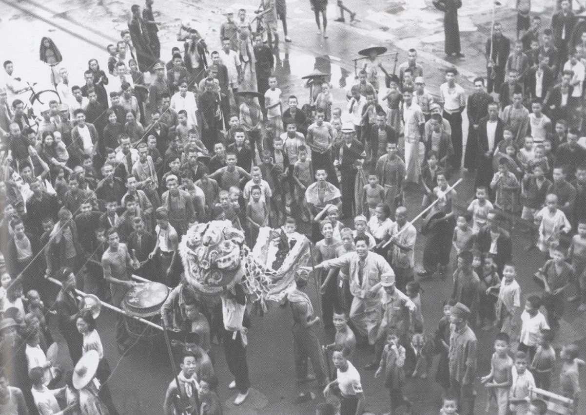 • Povo de Guangzhou celebra a vitória (Imagem fornecida pelo Museu Comemorativo da Guerra de Resistência do Povo Chinês contra a Agressão Japonesa)