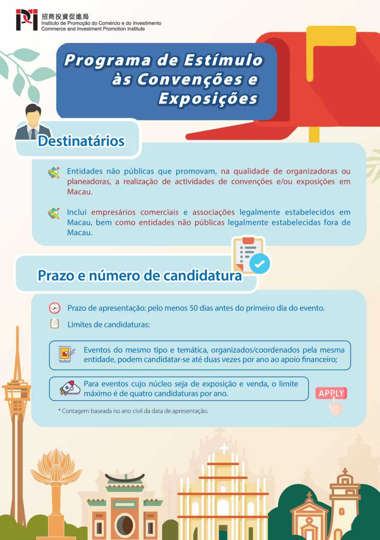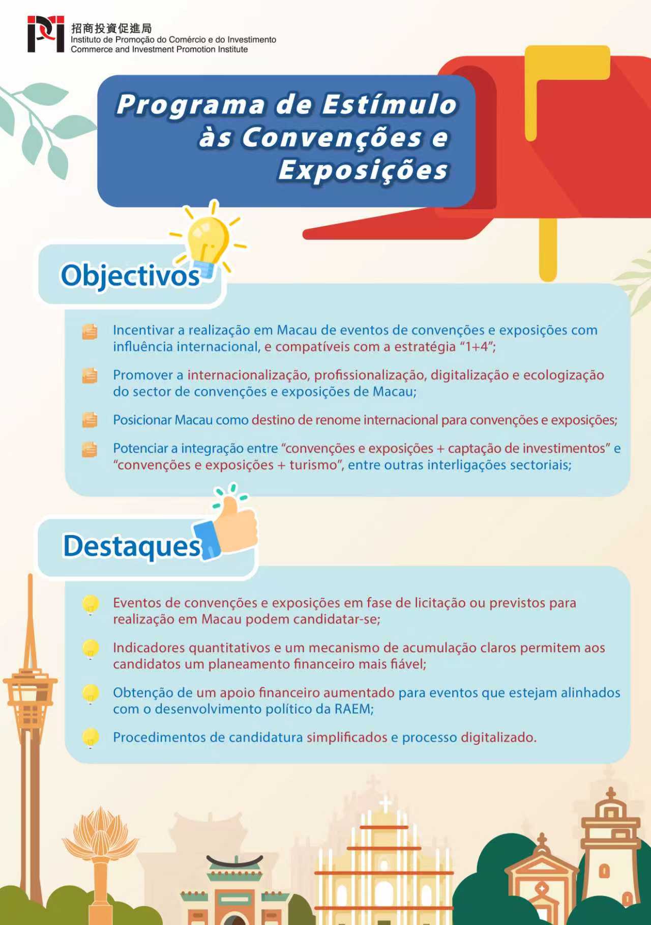 Em particular, o “Programa de Estímulo às Convenções e Exposições” foca-se na captação de eventos de impacto internacional alinhados com as indústrias prioritárias do “1+4”, incentivando também o modelo “Um Evento, Dois Locais” para promover o desenvolvimento das indústrias prioritárias, acelerar a integração com a Zona de Cooperação Aprofundada entre Guangdong e Macau em Hengqin, e facilitar a ligação intersectorial entre “convenções e exposições + turismo” e “convenções e exposições + investimento”. O “Programa de Incentivo Financeiro para Participação em Feiras e Exposições” integra as categorias de “participação em exposição” e “promoção”, permite candidaturas até seis vezes por ano e clarifica os requisitos de apreciação e aprovação, optimizando e simplificando os procedimentos de candidatura. Ambos os programas poderão ser candidatados em processo integralmente digital através da “Plataforma para Empresas e Associações”.
