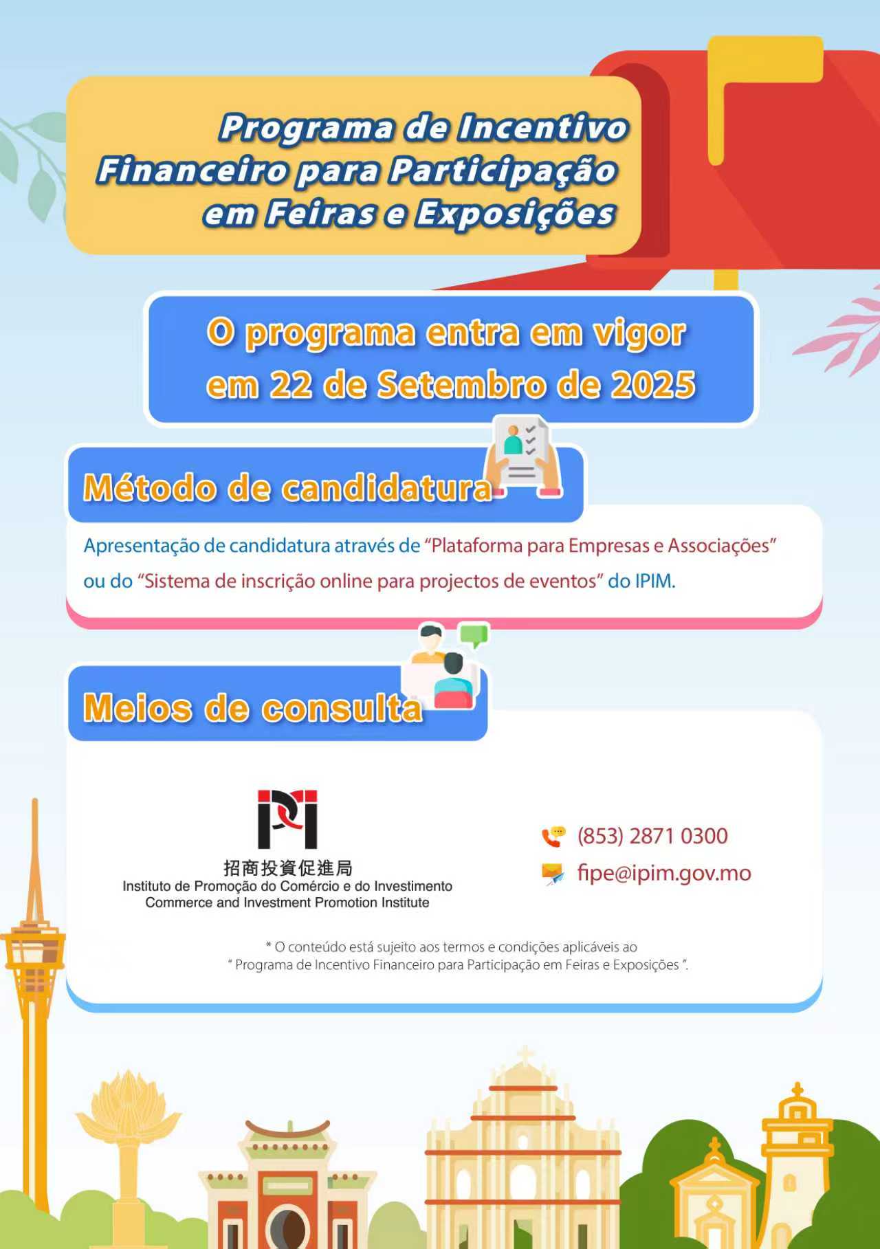 Para elevar a competitividade internacional e a vitalidade da indústria de convenções e exposições de Macau, impulsionando a sua internacionalização, profissionalização, digitalização e ecologização, o Instituto de Promoção do Comércio e do Investimento (adiante designado por “IPIM”) procedeu à revisão do “Programa de Estímulo às Convenções e Exposições” e do “Programa de Incentivo Financeiro para Participação em Feiras e Exposições”. Hoje (dia 18) realizou-se uma sessão de esclarecimento para apresentar o conteúdo de optimizações realizadas.