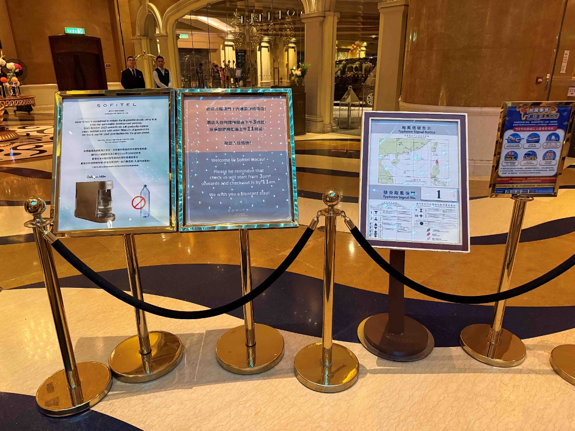 De acordo com as inspecções, os estabelecimentos hoteleiros definiram previamente planos de contingência e adoptaram uma série de medidas de resposta, incluindo a remoção temporária de dispositivos móveis no exterior do edifício, instalação de comportas contra inundações, verificação abrangente do equipamento de energia de reserva, entre outros. Por outro lado, no hall dos hotéis ou em local visível também foi colocada alerta com aviso sobre o sinal de tempestade tropical em vigor em Macau e as alterações nos transportes públicos durante o período de influência do tufão, para os visitantes terem acesso às últimas informações de prevenção contra o tufão.