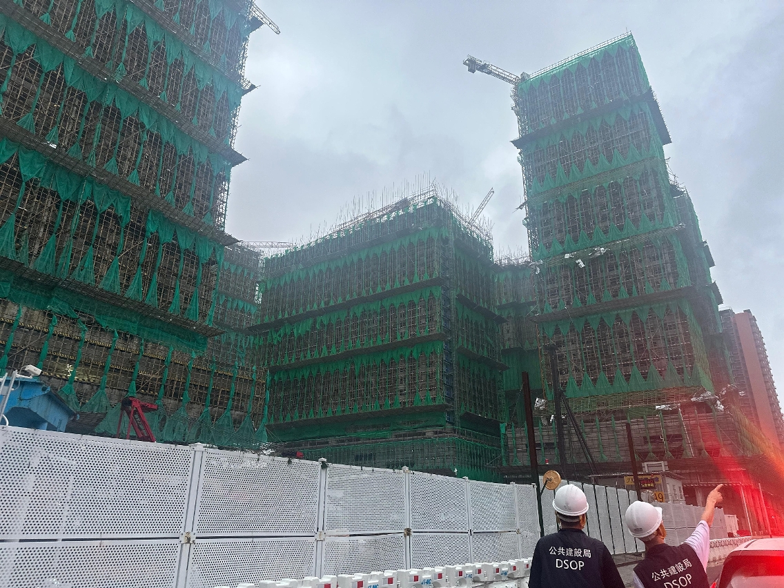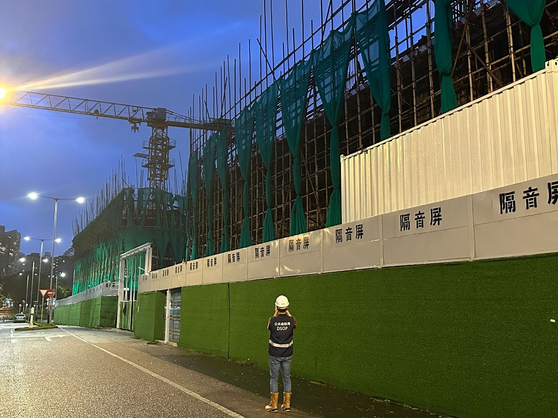 Após essa inspecção, verificou-se que parte dos tapumes, da obra da travessia pedonal na Avenida do Nordeste, situados junto à estrada, ficaram inclinados devido às rajadas do supertufão, o que constitui um risco de segurança, tendo o empreiteiro procedido, com urgência, à vedação, com o recurso a barreiras de água, após a retirada do sinal n.o 8 de tempestade tropical, com vista a garantir a segurança do público.