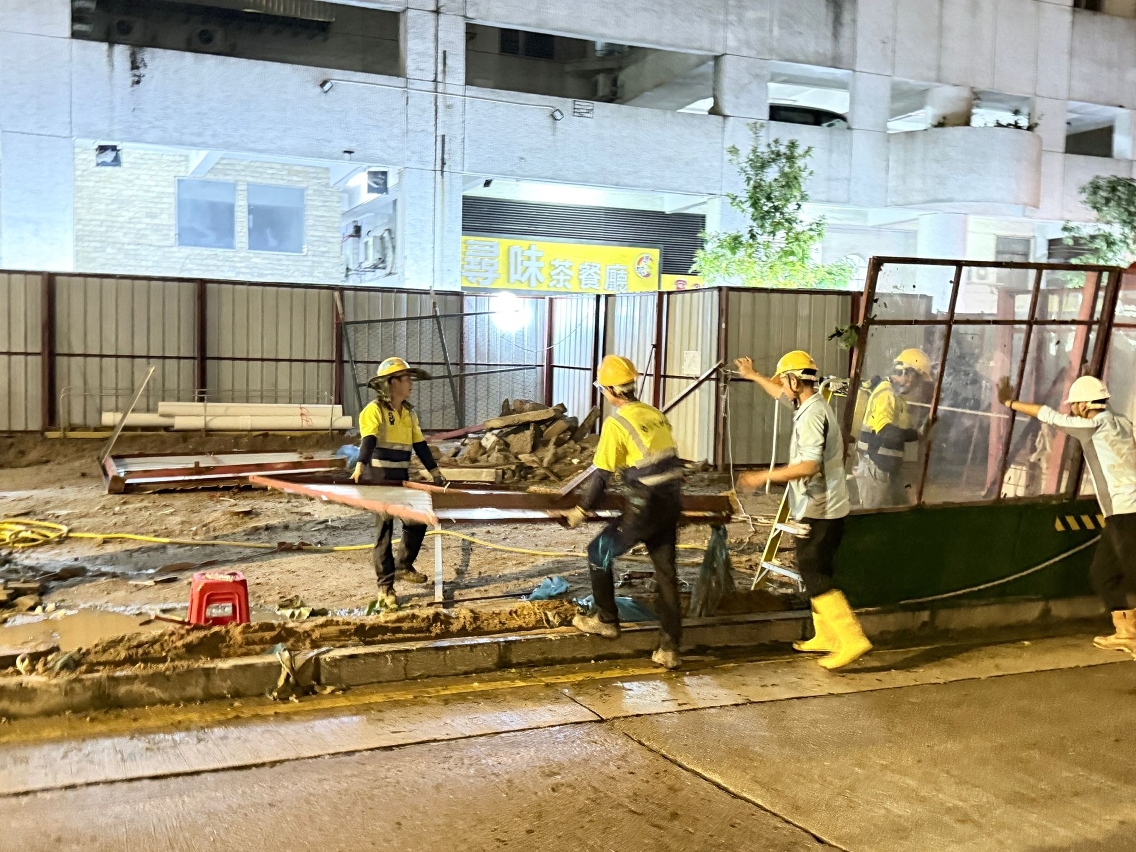 A fim de acelerar os trabalhos de remoção e de limpeza dos danos provocados durante o ataque do supertufão “Ragasa” em Macau, a Direcção dos Serviços de Obras Públicas deslocou-se de imediato, na altura em que o sinal n.o 10 foi substituído pelo sinal n.o 8 de tempestade tropical, às obras que lhe pertencem para se inteirar da situação dos danos nos diversos locais de obra, e se estes danos tinham causado impacto às vias circundantes ou às instalações públicas, entre outros, no intuito de coordenar e organizar os trabalhos de remoção e de limpeza de forma mais urgente.
