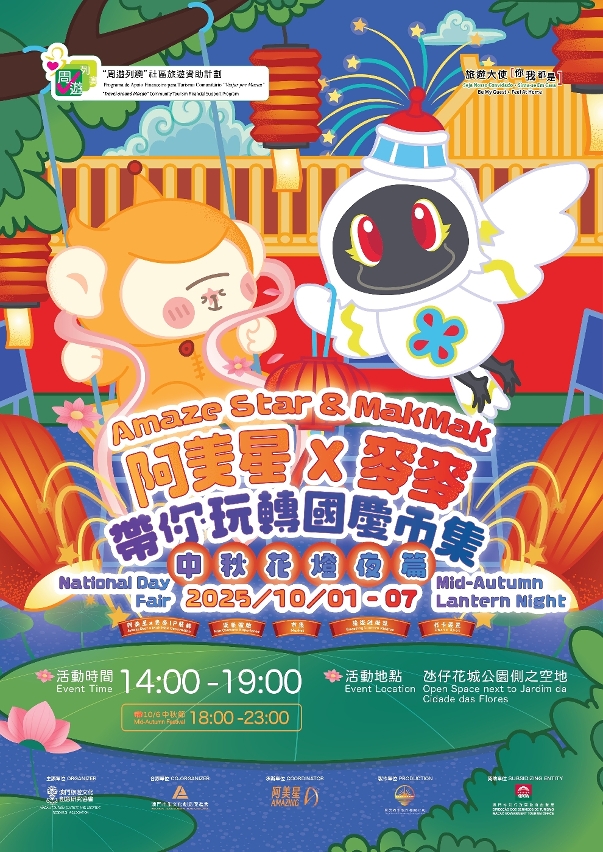 A “Amaze Star & Mak Mak - National Day Fair - Mid-Autumn Lantern Night”, que decorre entre os dias 1 e 7 de Outubro, junto à entrada do Jardim Cidade das Flores, na Taipa, apresenta uma feira típica, espectáculos de rua e instalações para tirar fotografias. À noite, lanternas transformam a paisagem nocturna e reforçam o ambiente festivo.