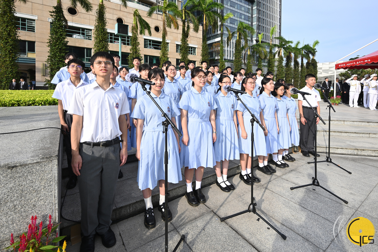 Antes da recepção, realizou-se, pelas 08h00 horas, a cerimónia do içar das bandeiras em comemoração do 76.º aniversário da implantação da RPC, na Praça Flor de Lótus. A cerimónia contou com a presença do Chefe do Executivo, Sam Hou Fai, bem como de responsáveis das instituições do Governo Popular Central na RAEM, dos responsáveis dos órgãos legislativos e judiciais, e ainda de membros do Conselho Executivo, deputados da Assembleia Legislativa, responsáveis dos serviços públicos, representantes de Macau na Assembleia Popular Nacional e na Conferência Consultiva Política do Povo Chinês e de outras personalidades dos diversos quadrantes sociais, num total de cerca de 660 convidados.