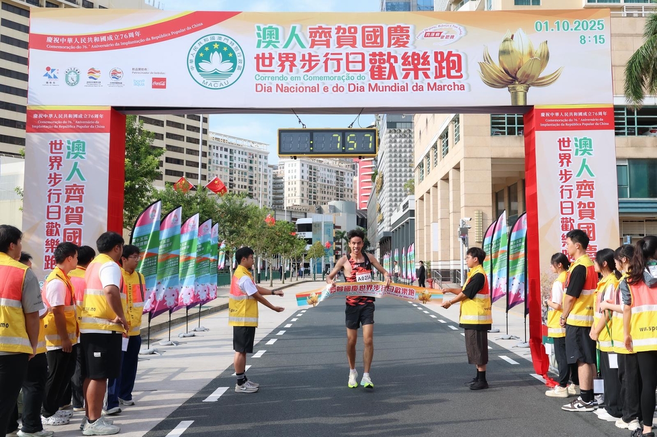 Em comemoração do “76.º Aniversário da Fundação da República Popular da China, a actividade de corrida intitulada “Correndo em Comemoração do Dia Nacional e do Dia Mundial da Marcha 2025”, organizada pelo Instituto do Desporto, teve lugar hoje (dia 1) às 08H15 na Praça de Lótus Dourado. A corrida começou logo depois da cerimónia da partida presidida pelo Chefe do Executivo da Região Administrativa Especial de Macau, Sam Hou Fai.