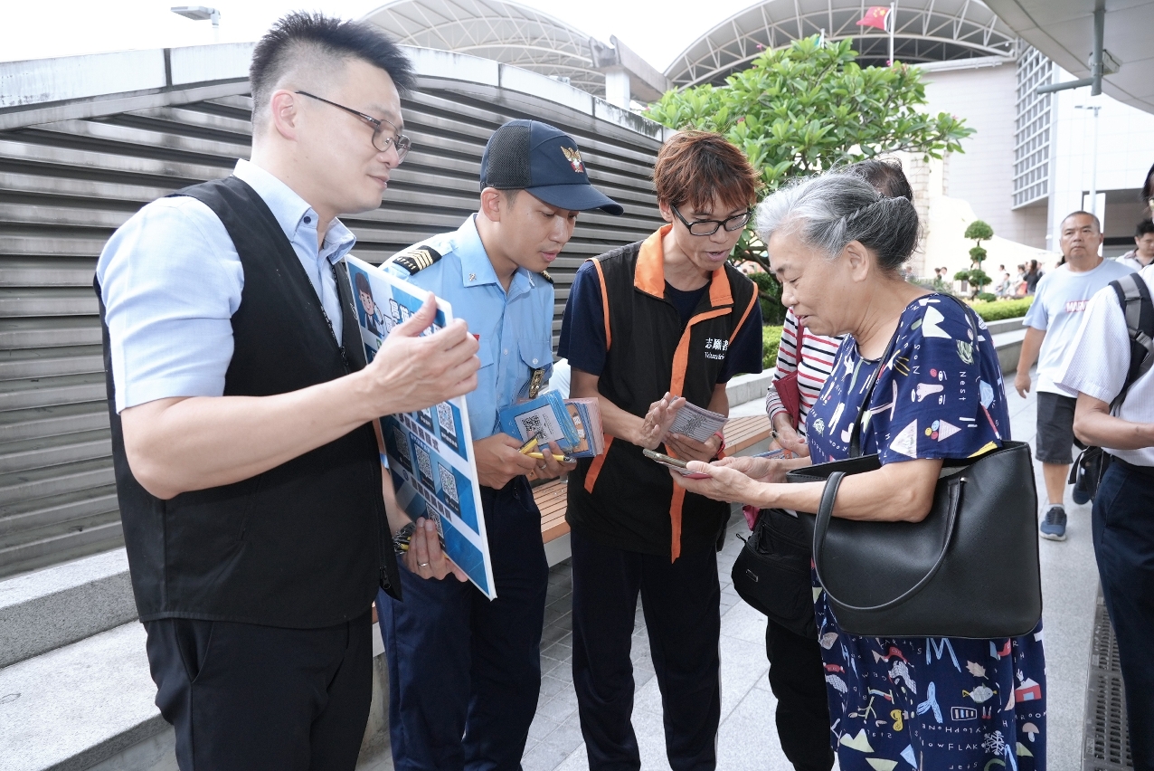 Com o objectivo de reforçar a consciência pública sobre a prevenção de catástrofes, os Serviços de Polícia Unitários (SPU), em conjunto com o Corpo de Bombeiros, a Escola Superior das Forças de Segurança de Macau e os voluntários de protecção civil, realizaram acções de sensibilização nas zonas das Portas do Cerco e do Posto Fronteiriço de Hengqin. A equipa de sensibilização distribuiu panfletos aos residentes e visitantes e apresentou as medidas de prevenção contra tufão.