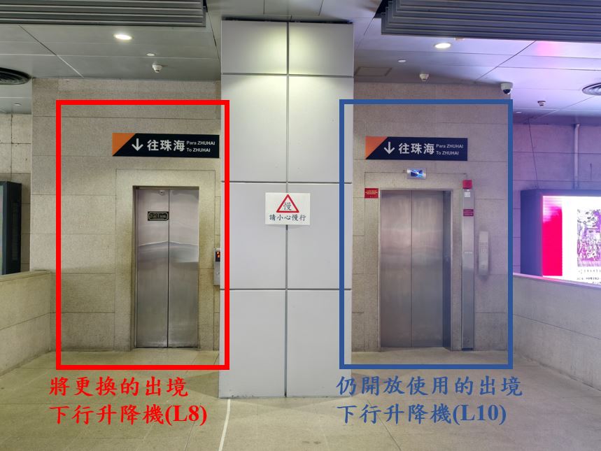 Durante a execução das obras, os passageiros que saiam de Macau podem descer pelo elevador (L10), sendo que a DSFSM irá aumentar a frequência de realização de manutenção do elevador (L10) para garantir que este funcione com segurança.