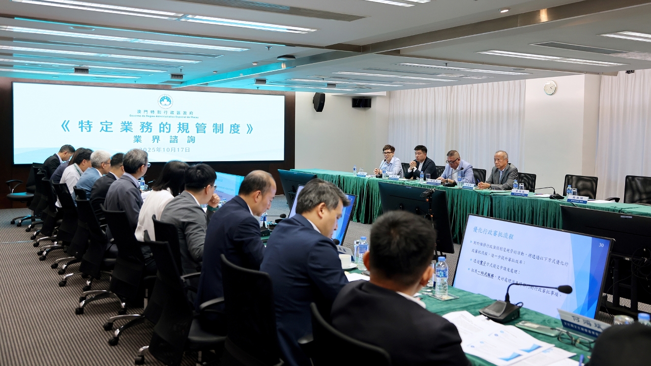 No intuito de auscultar mais opiniões e sugestões dos sectores em relação à legislação em apreço, o Governo da RAEM levou a cabo oito sessões de colóquios destinados à consulta sectorial, onde se procedeu à abordagem profunda e foram trocadas opiniões sobre as medidas de aperfeiçoamento, no contexto da revisão do regime de condicionamento administrativo sobre o ambiente de negócios. Os participantes dos colóquios procederam à discussão em torno da flexibilização das modalidades de regulamentação que se encontram previstas no“Regime para a regulamentação de determinadas actividades” e apresentaram ainda opiniões e sugestões sobre o regime de condicionamento administrativo, incluindo a regulamentação dos regimes do registo, da notificação prévia e de licenciamento aplicáveis às actividades económicas com diferentes níveis de risco, a simplificação do regime de apreciação e aprovação administrativa, a redução de condições e procedimentos administrativos desnecessários, a mudança das entidades competentes, a optimização dos procedimentos relevantes para apreciação e aprovação por via electrónica, entre outros.
