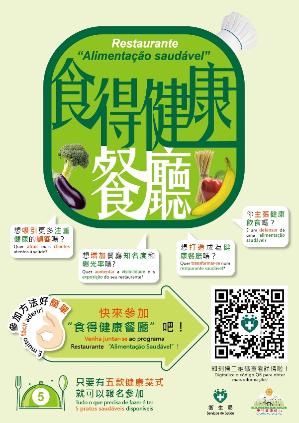 Actualmente, o programa "Restaurantes - Alimentação Saudável" conta já com a adesão de mais de 300 comerciantes locais, abrangendo diversos tipos de estabelecimentos de restauração, incluindo cozinha chinesa, ocidental, japonesa, coreana e do sudeste asiático. Os comerciantes participantes fornecem diariamente, no mínimo, cinco pratos saudáveis, contribuindo para a promoção de uma alimentação saudável entre os residentes. Os Serviços de Saúde renovam o apelo para que mais estabelecimentos de restauração se juntem a este programa, na esperança de que, através da cooperação tripartida entre "promoção governamental, apoio de sectores e participação dos residentes", seja possível continuar a promover a cultura de alimentação saudável, criando, em conjunto, um ambiente alimentar saudável na comunidade. Para informações mais pormenorizadas, é recomendável consultar a página electrónica "Alimentação Saudável Macau Saudável" dos Serviços de Saúde (www.ssm.gov.mo/healthyeating/) ou contactar através do número de telefone/WeChat 66773943 ou do endereço de correio eletrónico dps@ssm.gov.mo.