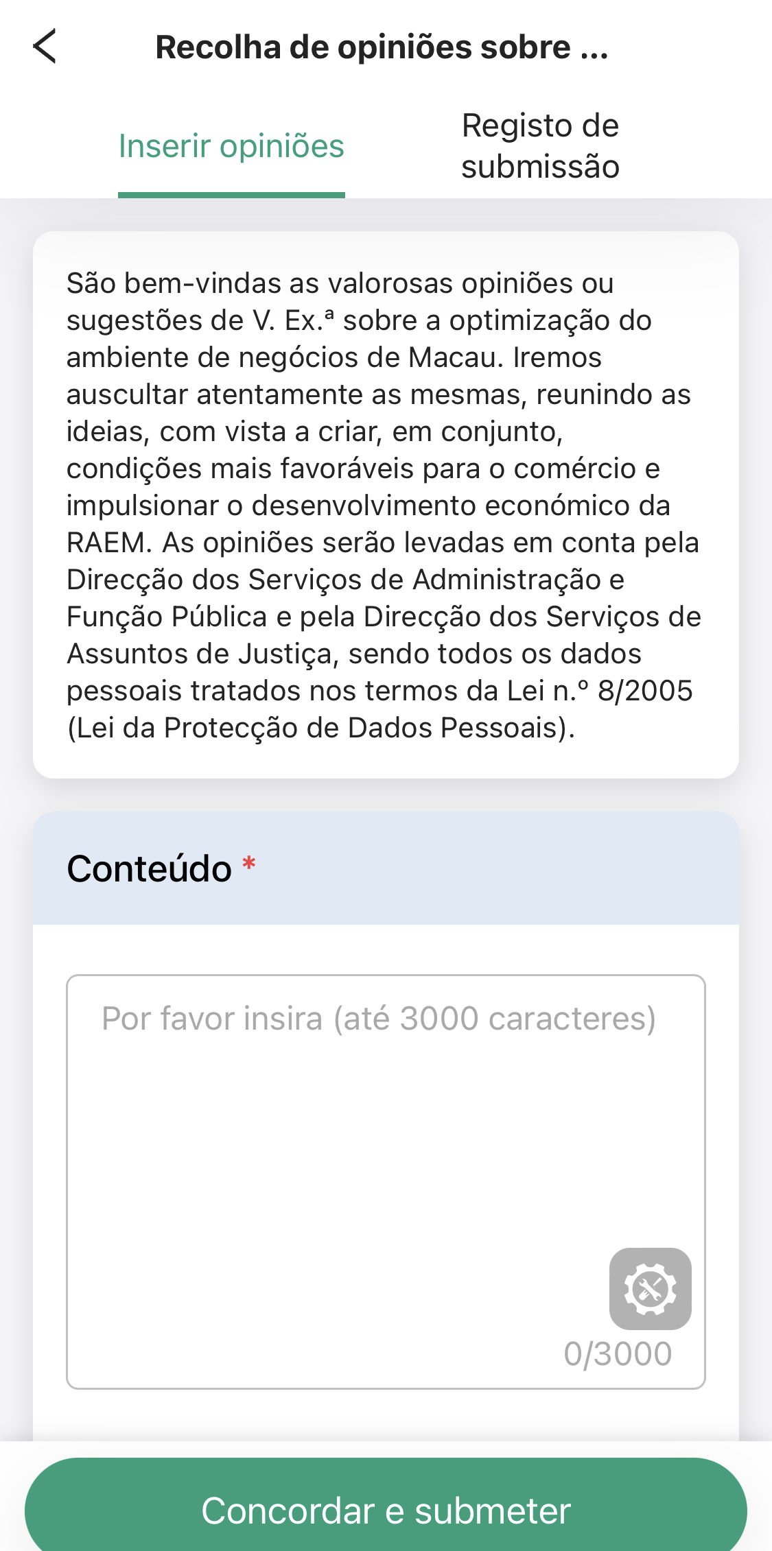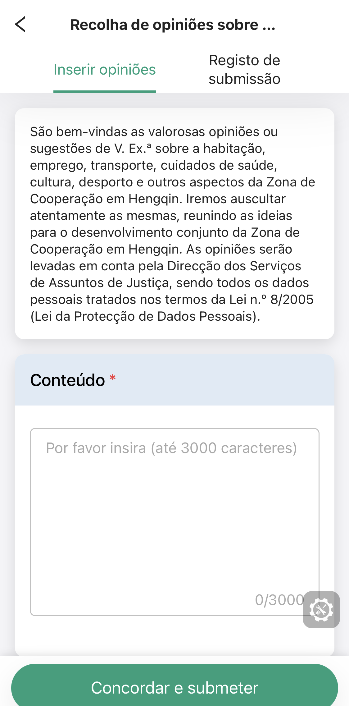 A partir de hoje (19 de Dezembro), os residentes podem aceder à aplicação móvel ou à página electrónica da Conta Única de Macau (www.mo.gov.mo), clicando em “Recolha de opinião pública” na página de “Serviços” para apresentar opiniões ou sugestões sobre os referidos temas.