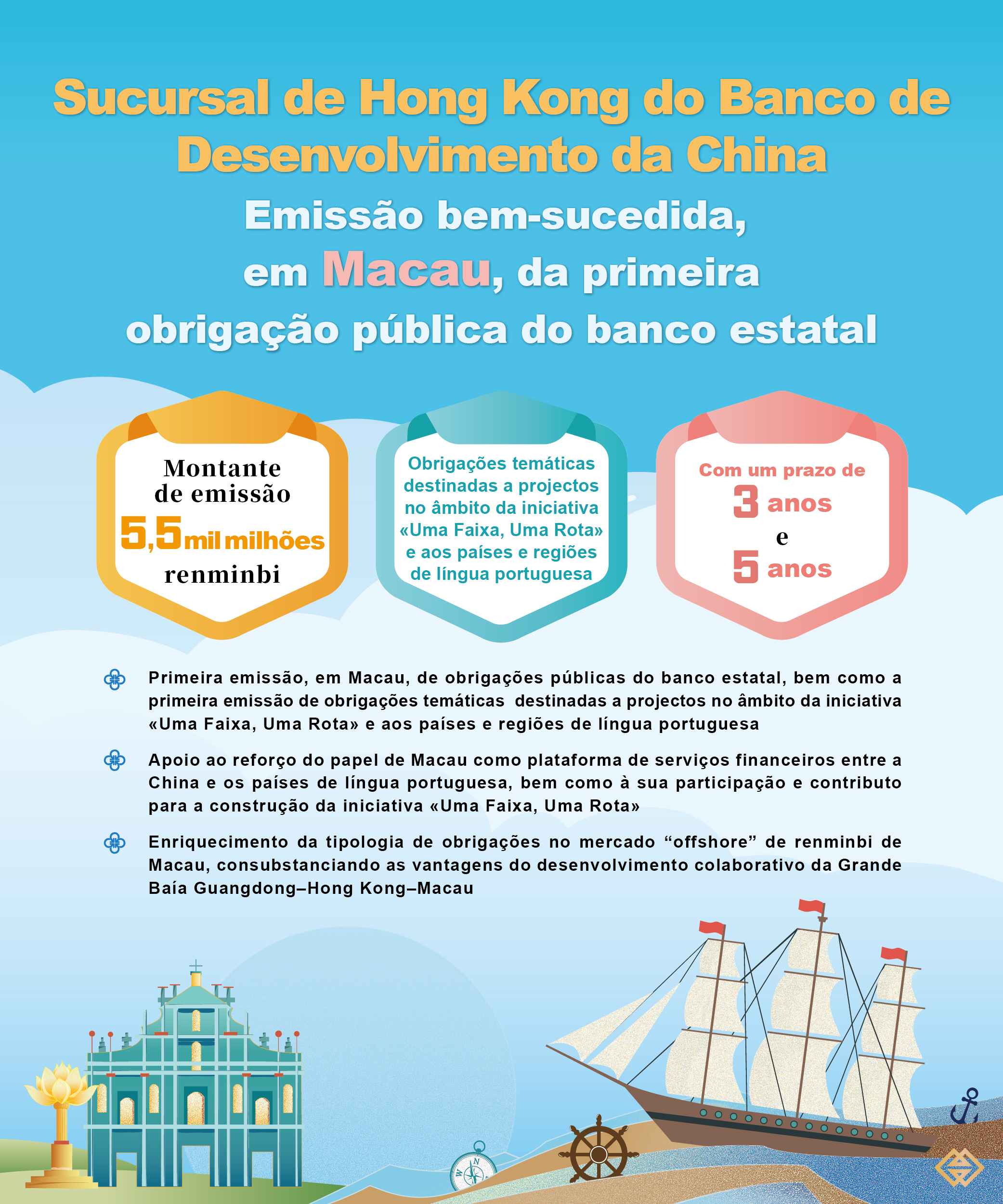 • Emissão bem-sucedida, em Macau, da primeira obrigação pública do banco estatal pela Sucursal de Hong Kong do Banco de Desenvolvimento da China