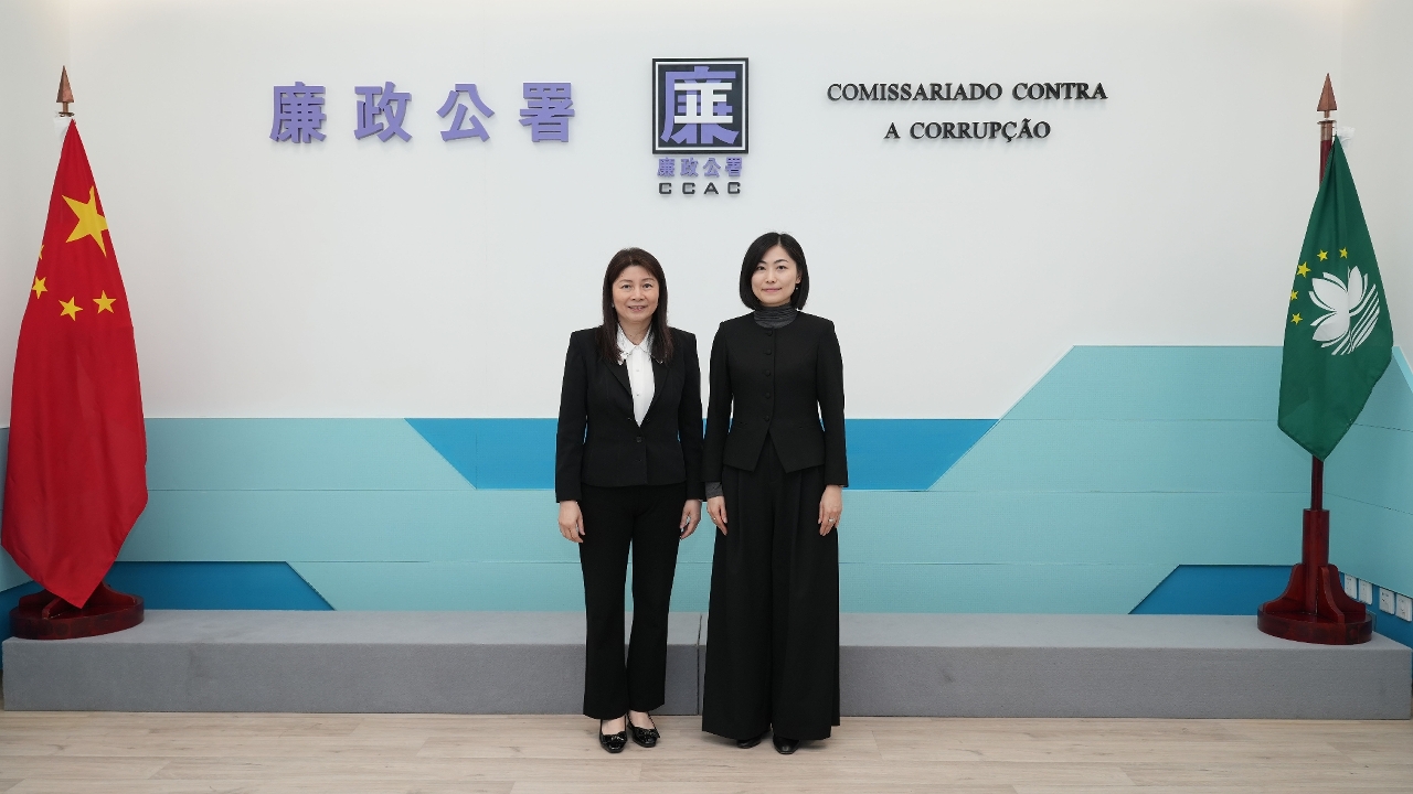 A Comissária contra a Corrupção, Ao Ieong Seong, recebeu esta tarde (dia 11), na base de educação para a integridade, sita na Delegação do Comissariado contra a Corrupcão (CCAC) na Taipa, a comitiva do Departamento de Justiça de Hong Kong chefiada pela Director of Public Prosecutions, Yang Mei Kei.
