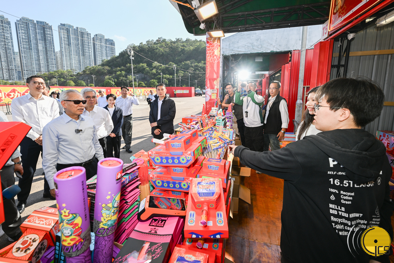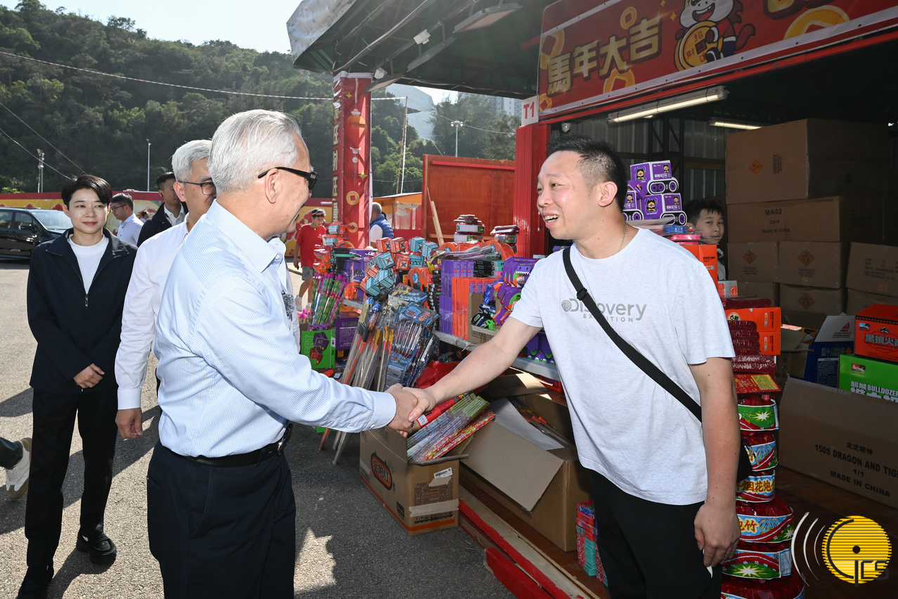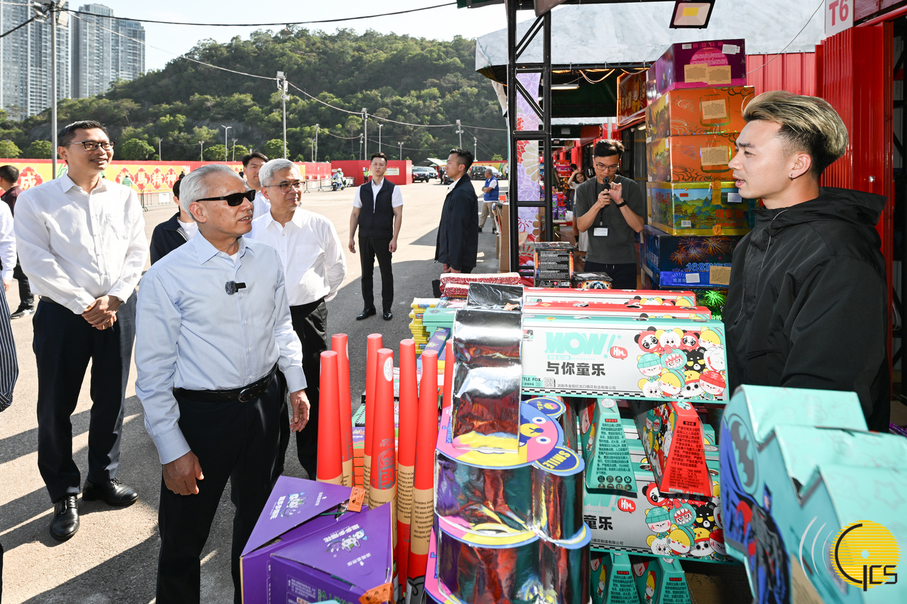 Posteriormente, Sam Hou Fai e a esposa deslocaram-se à zona de queima de panchões na Taipa, assistiram a uma breve apresentação sobre o primeiro dia de funcionamento. O Chefe do Executivo aproveitou para deixar votos de Ano Novo aos vendedores, inteirando-se do tipo de panchões e de fogo-de-artifício e das respecitvas medidas de segurança, e desejou sucesso para o primeiro dia de vendas e prosperidade de negócios nos próximos dias. Sam Hou Fai experimentou também a diversão de lançar fogo-de-artifício e queimar panchões, desejando que a Pátria assuma a liderança, a Região Administrativa Especial de Macau alcance grande sucesso e que todos os residentes tenham um próspero e feliz Ano do Cavalo.