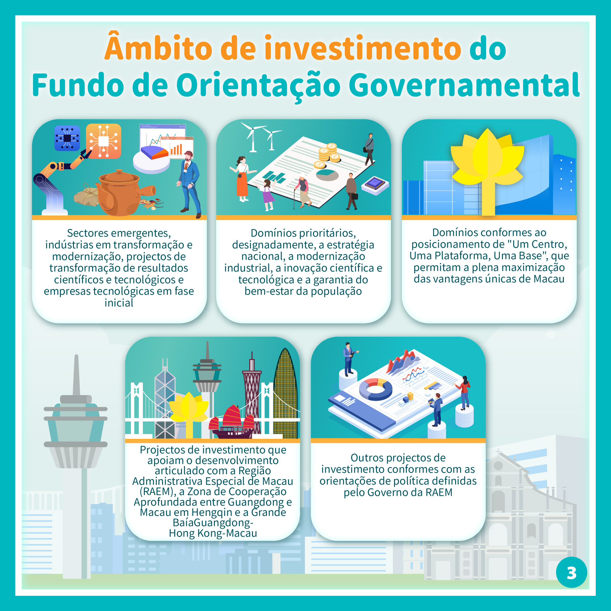 Constituição do Fundo de Orientação Governamental para promover a diversificação industrial Reforço da resiliência económica e apoio ao emprego e ao desenvolvimento de quadros qualificados em Macau
