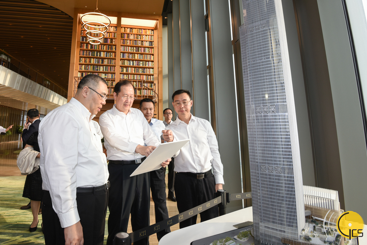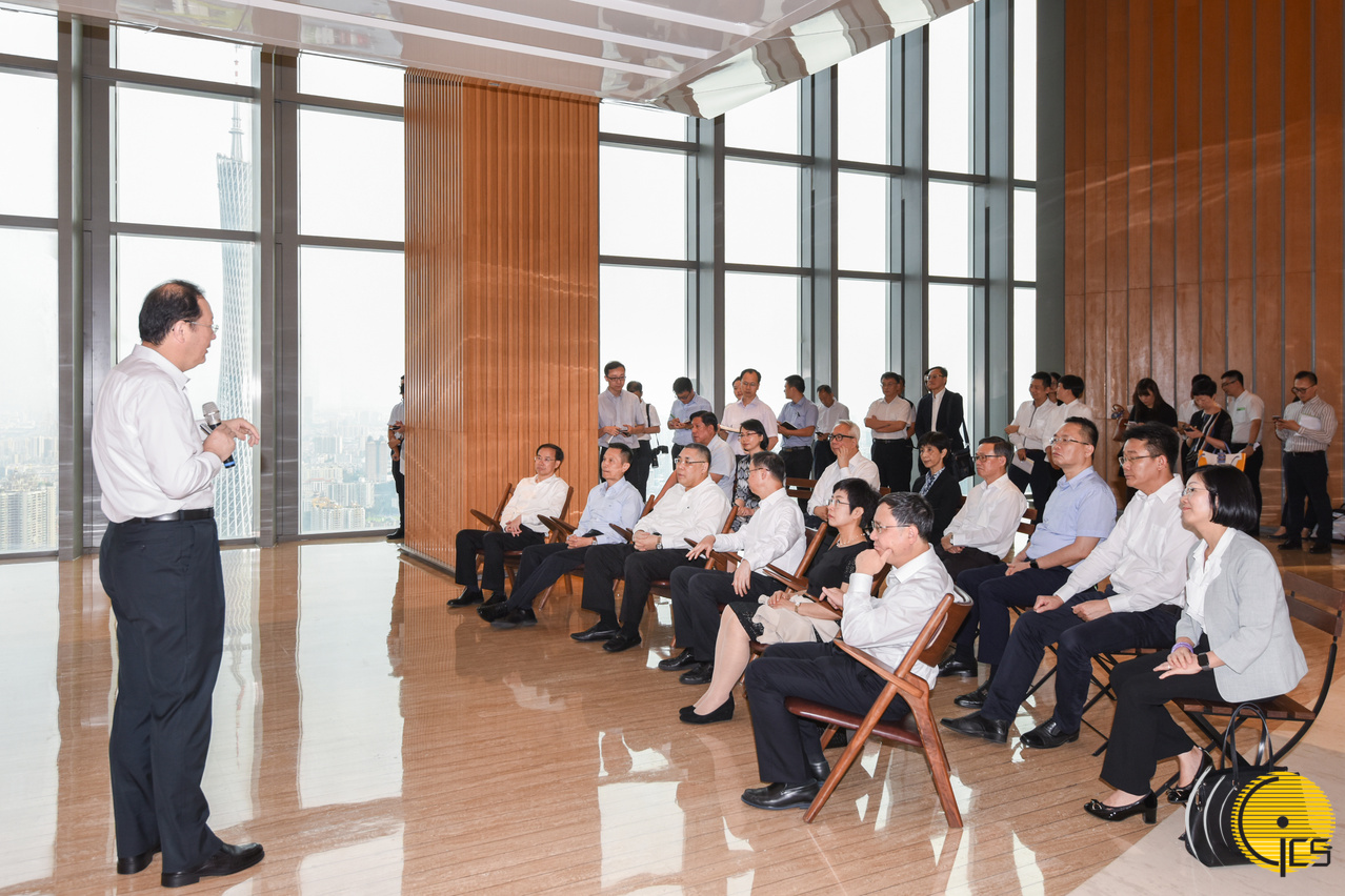 在广州访问的行政长官崔世安考察东塔,广州市市委书记任学锋介绍该市的经济和产业发展。
