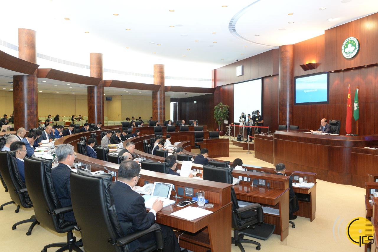 立法会举行全体会议,引介、一般性讨论及表决《修改第9/1999号法律〈司法组织纲要法〉》法案,行政法务司司长陈海帆列席会议。