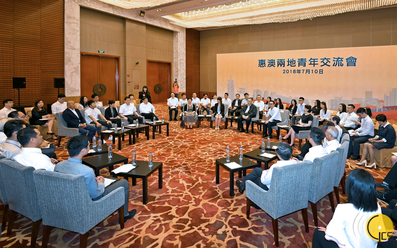 行政长官崔世安在惠澳两地青年交流会上与“千人汇”汇员代表和惠州青年交流