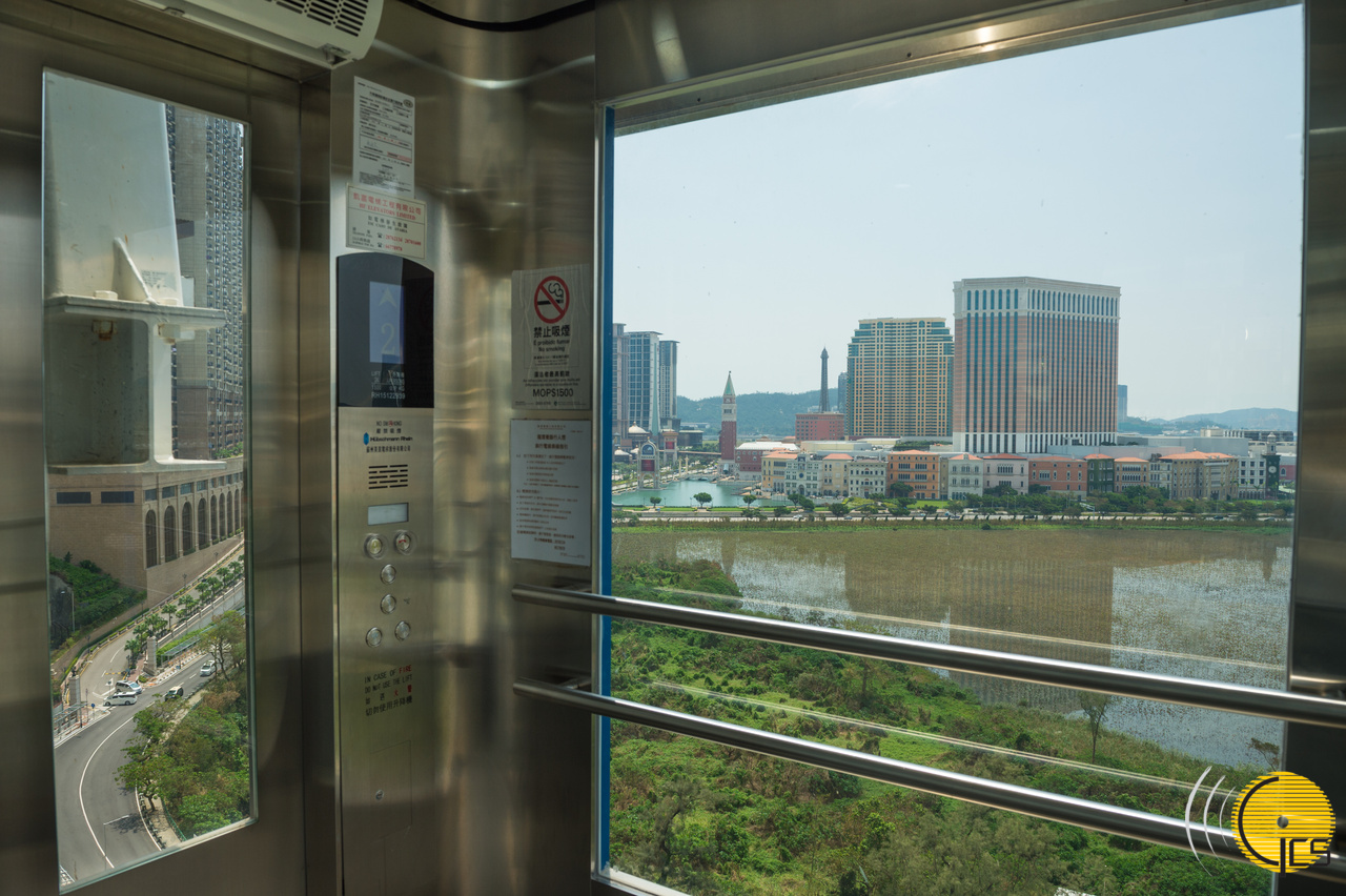 从透明的电梯望出来,可以看到路氹城及红树林全景,风景优美,十分写意。