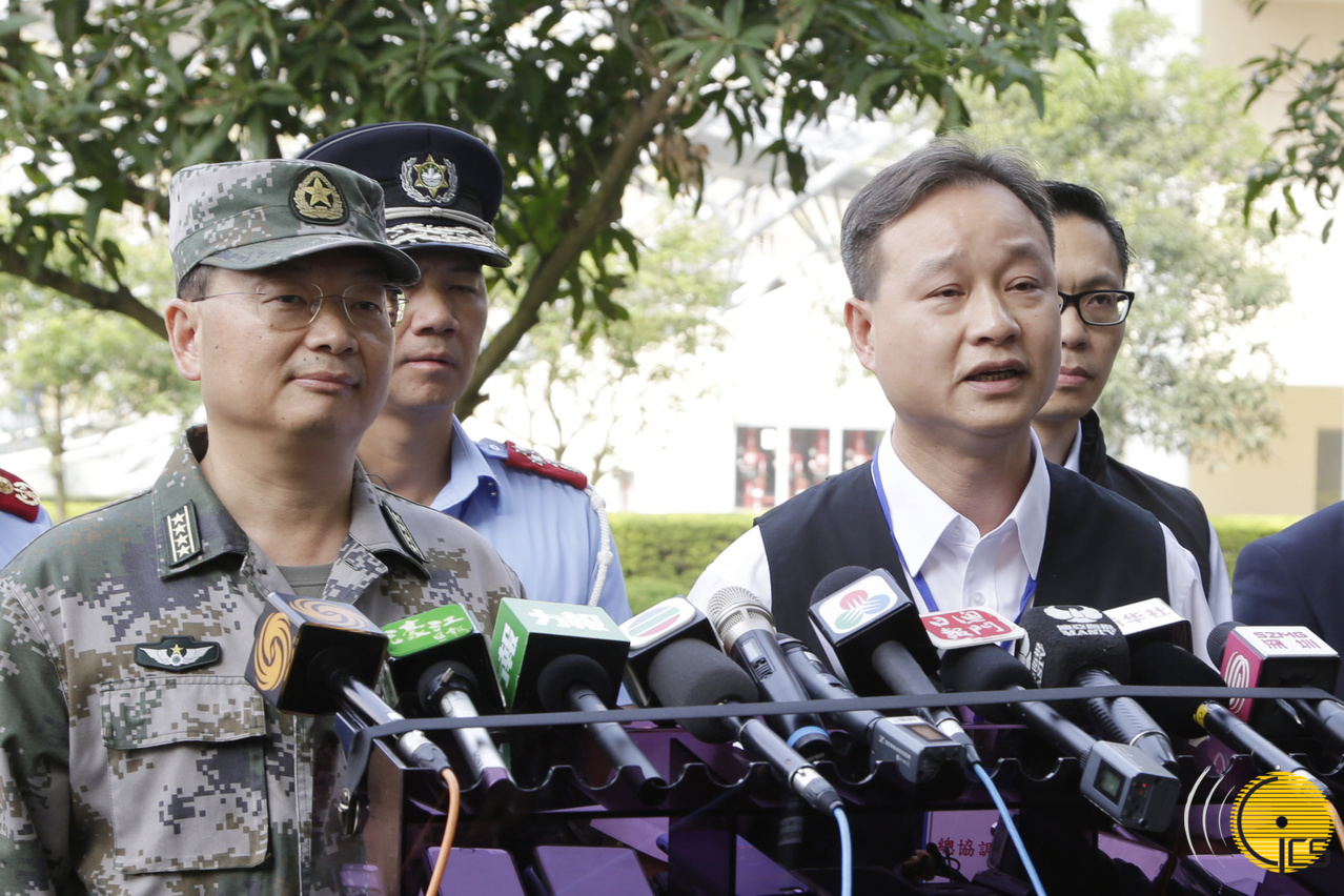 “大型联合反恐演练” – “灵犬”:警察总局局长马耀权及解放军驻澳部队参谋长朱安平大校接受访问