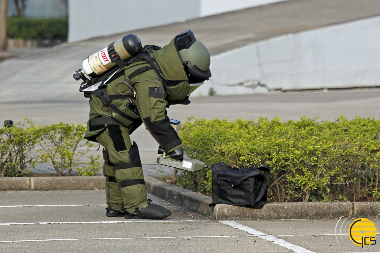 “大型联合反恐演练” – “灵犬”:炸弹排爆后,司警人员到场展开勘查工作。