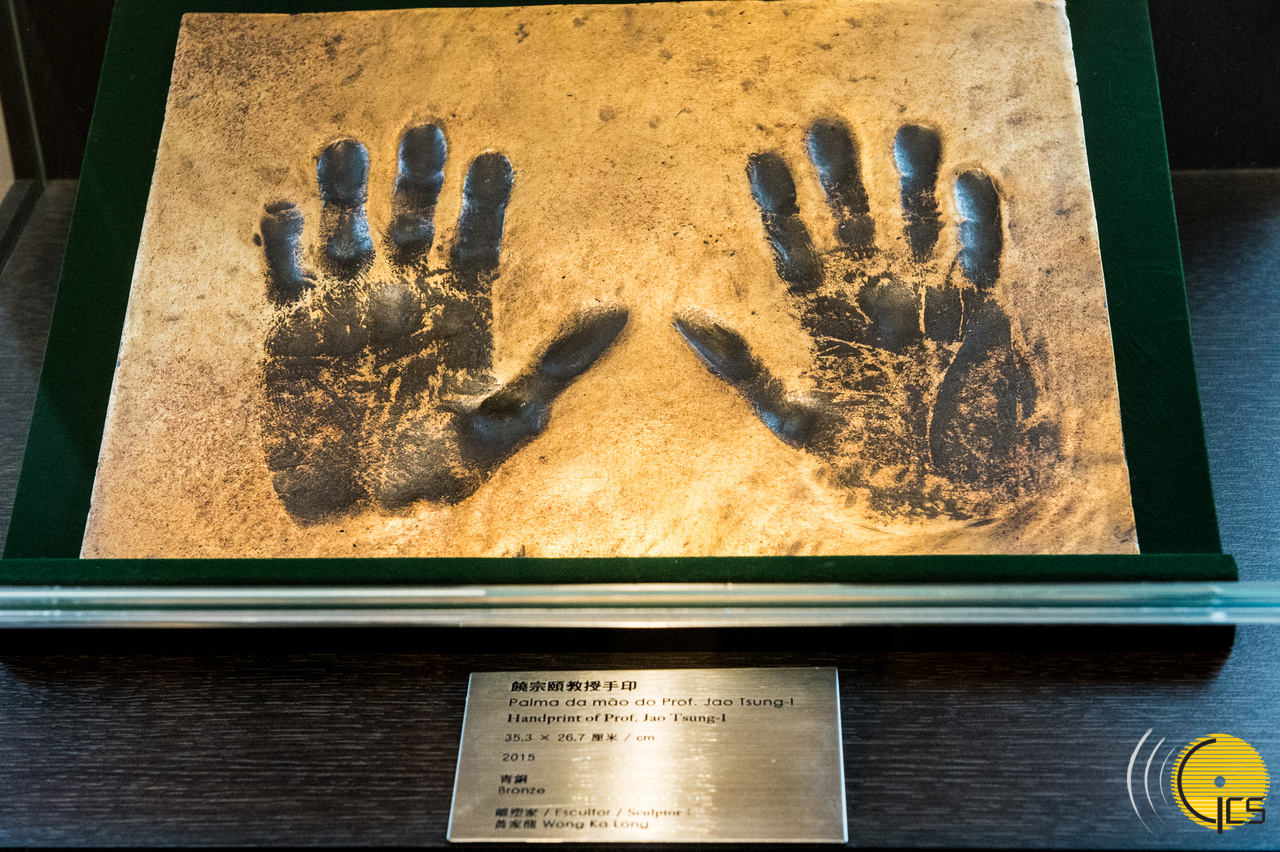 饶宗颐教授于学艺馆内“打手印”,把他这双创造出无数传世巨着的手掌倒模铸铜,作为后学晚辈学习精神的典范楷模。