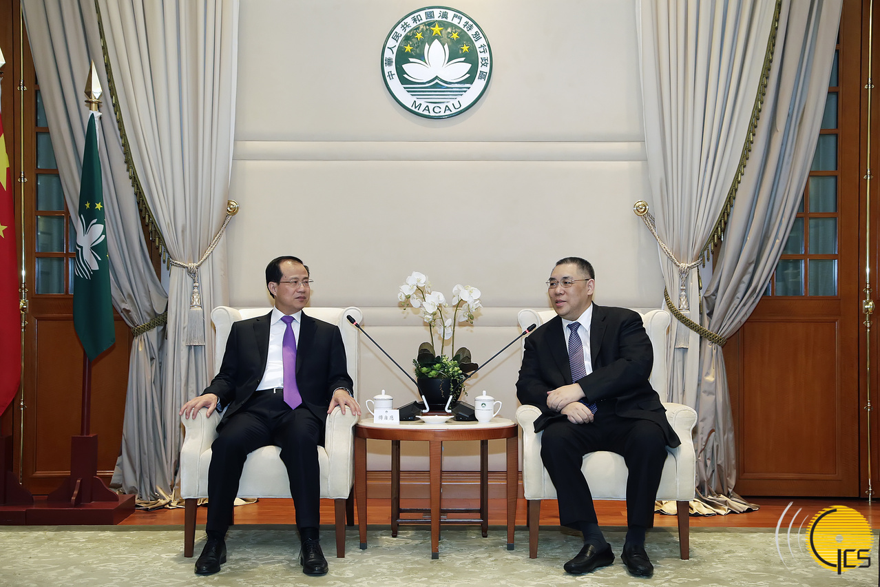 行政长官崔世安与来澳履新的中央人民政府驻澳门特别行政区联络办公室主任傅自应会面