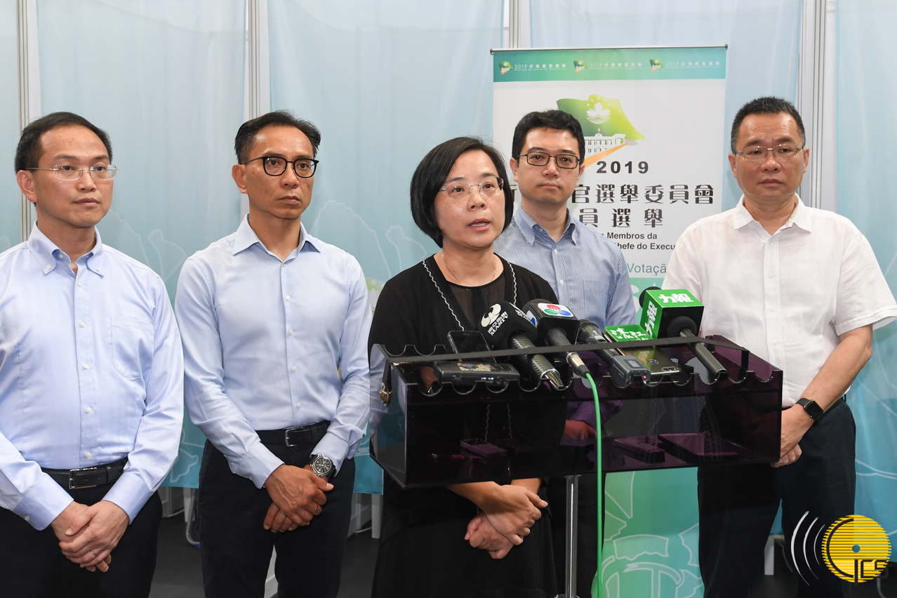 行政长官选举管理委员会主席宋敏莉视察选委选举投票站后接受传媒访问