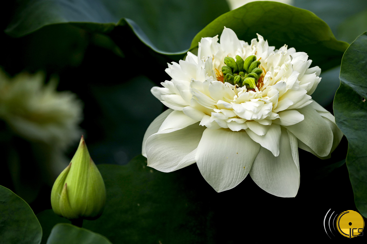 “濠江情”是今届荷花节的主题花,是中国荷花研究中心为庆祝澳门特区成立20周年而育成的新品种,花型大,重瓣,花色雪白。
