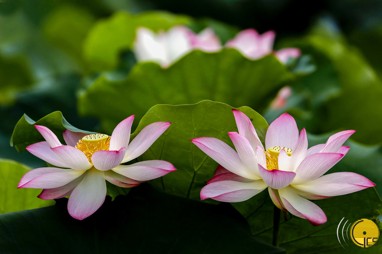 盛放的荷花仿佛向人展现灿烂的笑容。