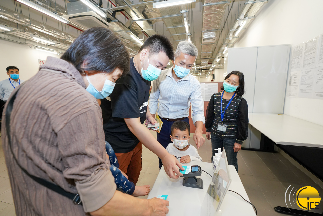 经济局局长戴建业等巡视多个发放电子消费卡服务点的情况,领卡整体过程畅顺,秩序良好。