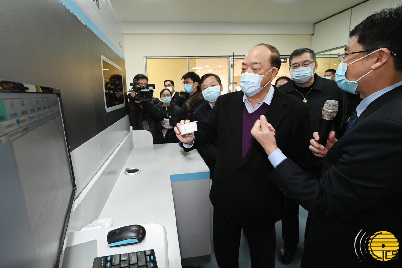 到访佛山市的行政长官贺一诚,考察一家中药研制公司。