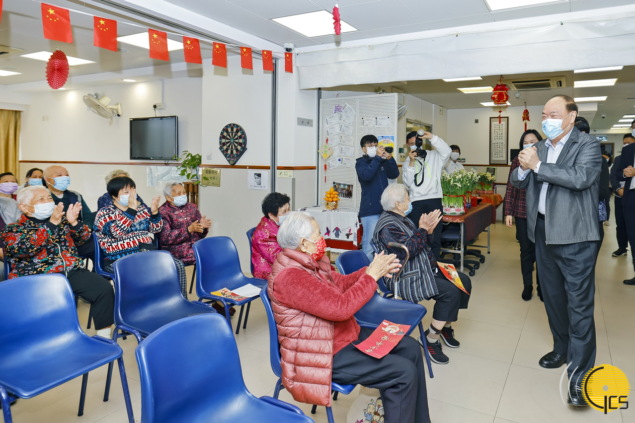 行政长官贺一诚与长者综合服务中心长者亲切交谈,并送上节日问候。
