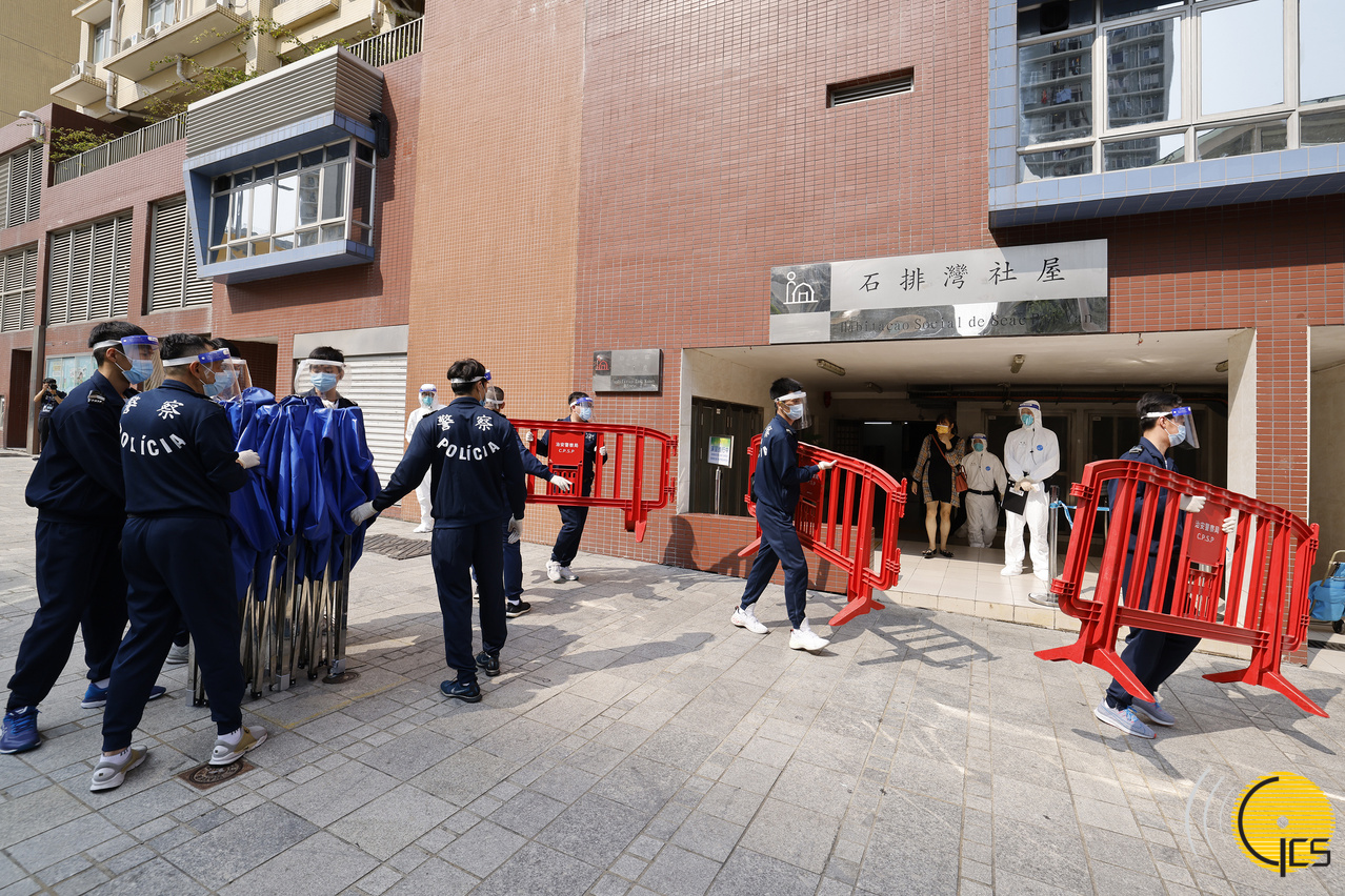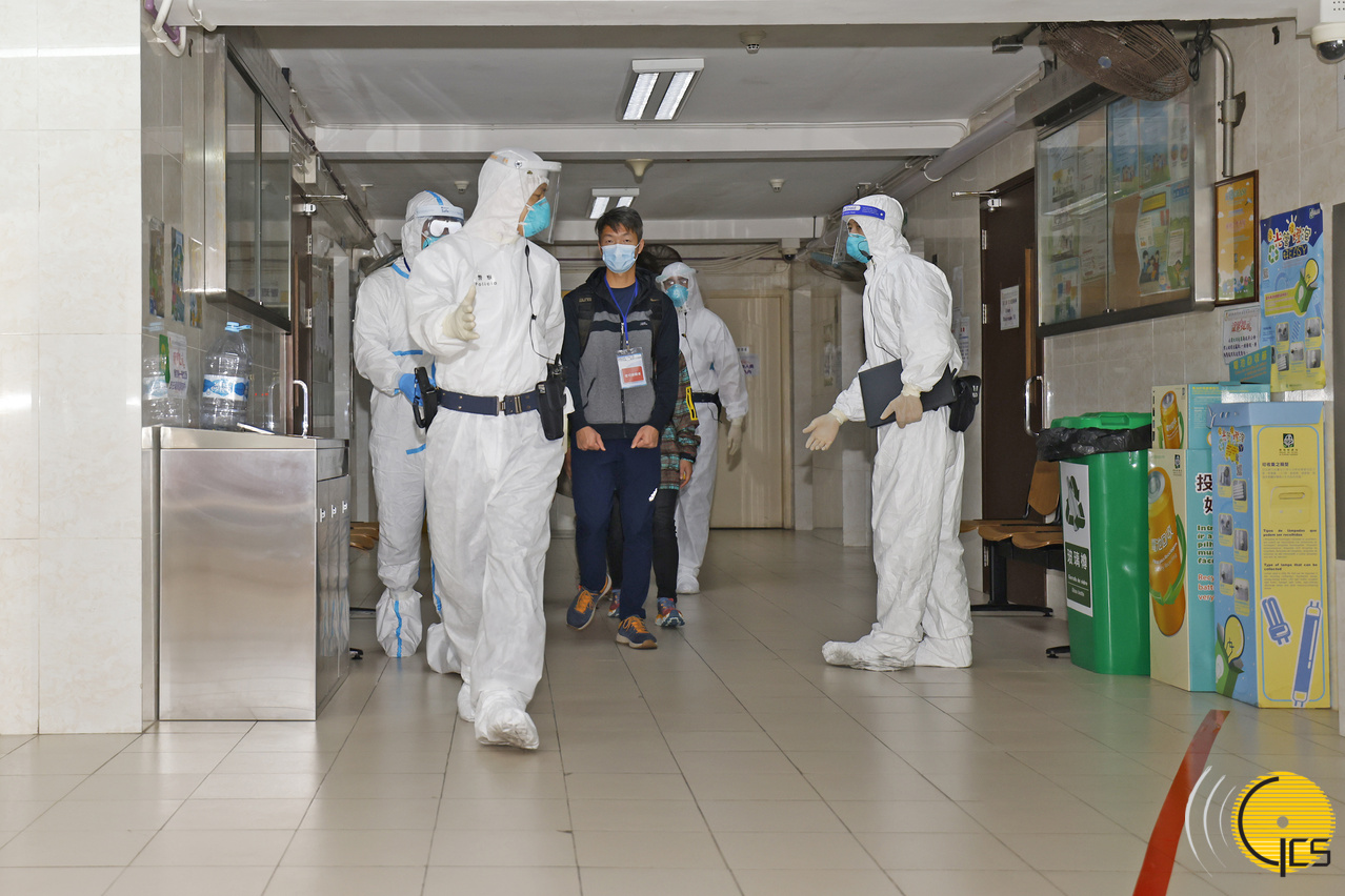 新型冠状病毒感染应变协调中心联同民防行动中心,于石排湾乐群楼进行"分区分级精准防控"实地演习。