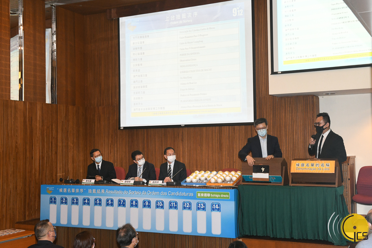 立法会选举管理委员会举行抽签仪式,以确定各候选名单在选票上的排序。