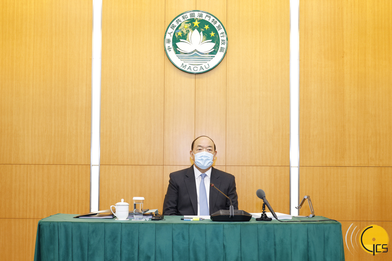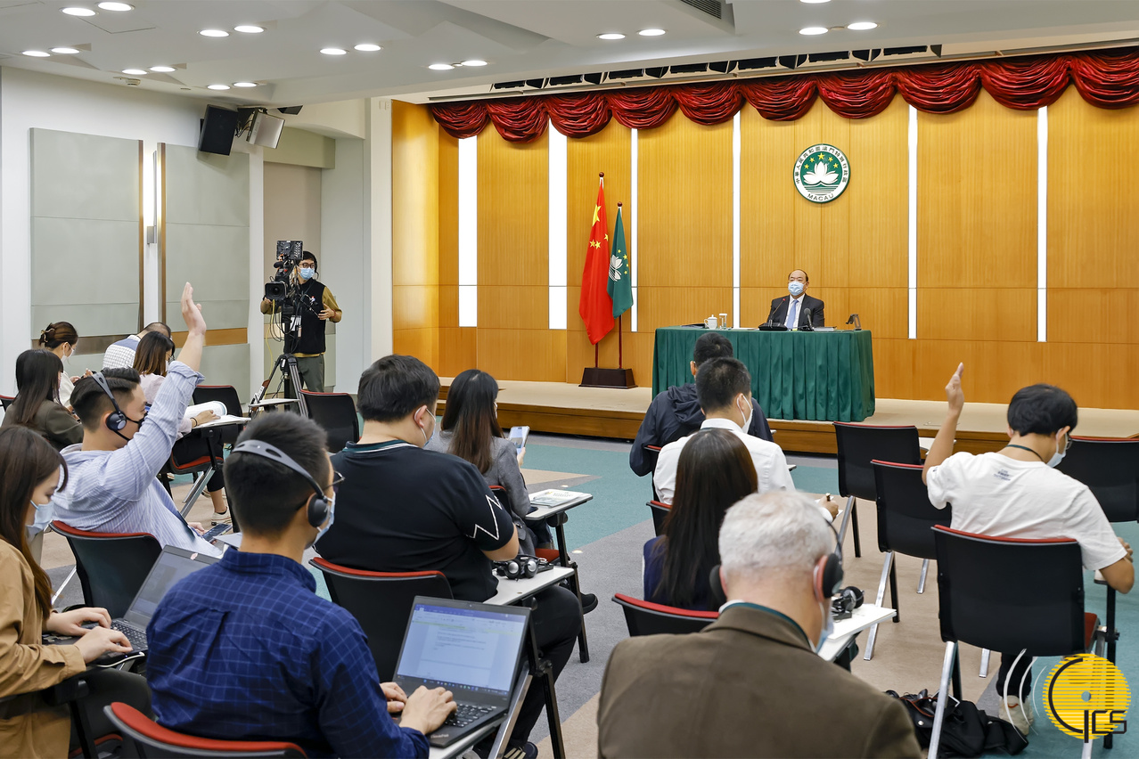 行政长官贺一诚发表《2023年财政年度施政报告》后在政府总部会见记者,回答记者提问。