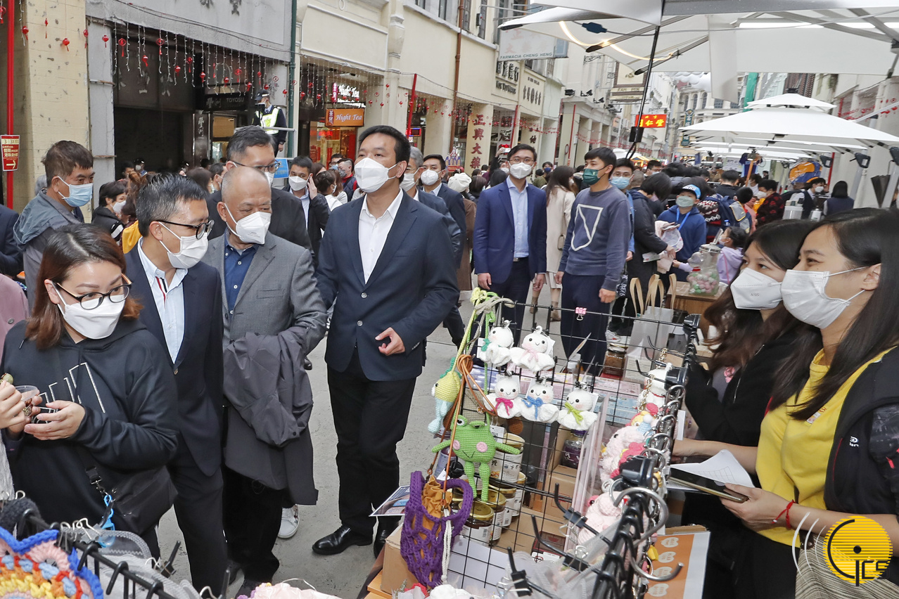 行政会委员一行实地瞭解“新马路任我行——步行区试行计划”的实施情况。