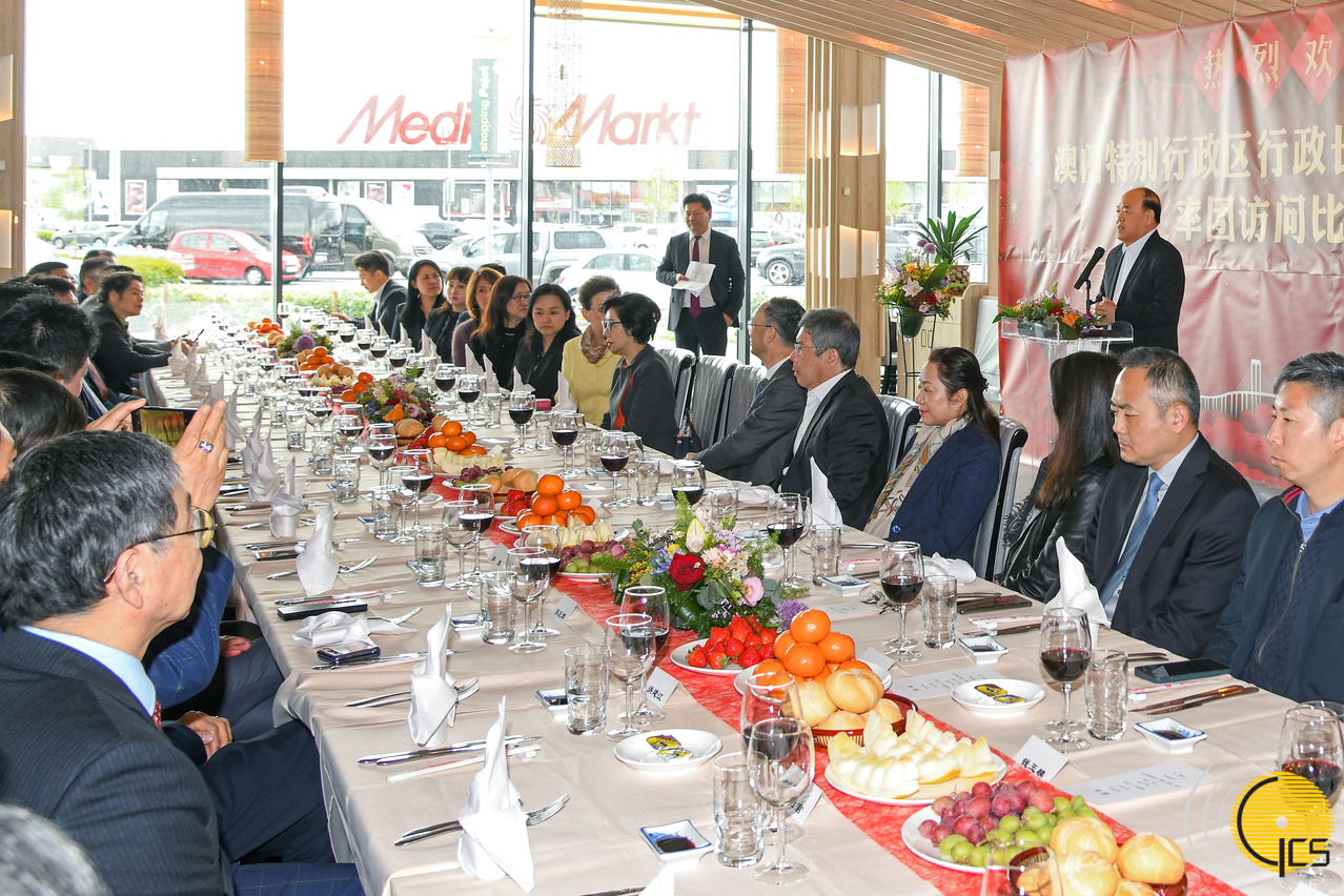 正在布鲁塞尔的行政长官贺一诚出席由比利时侨领所设的欢迎宴会