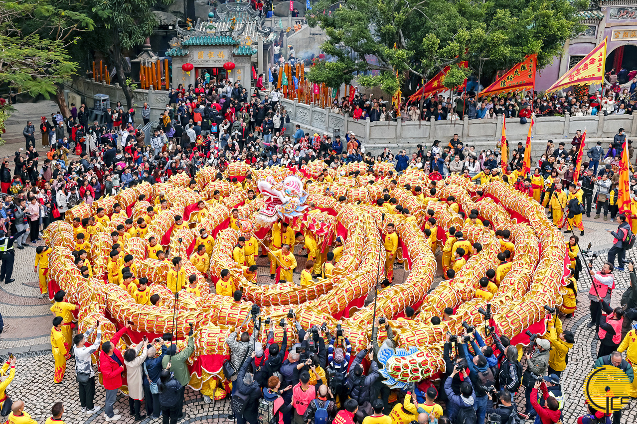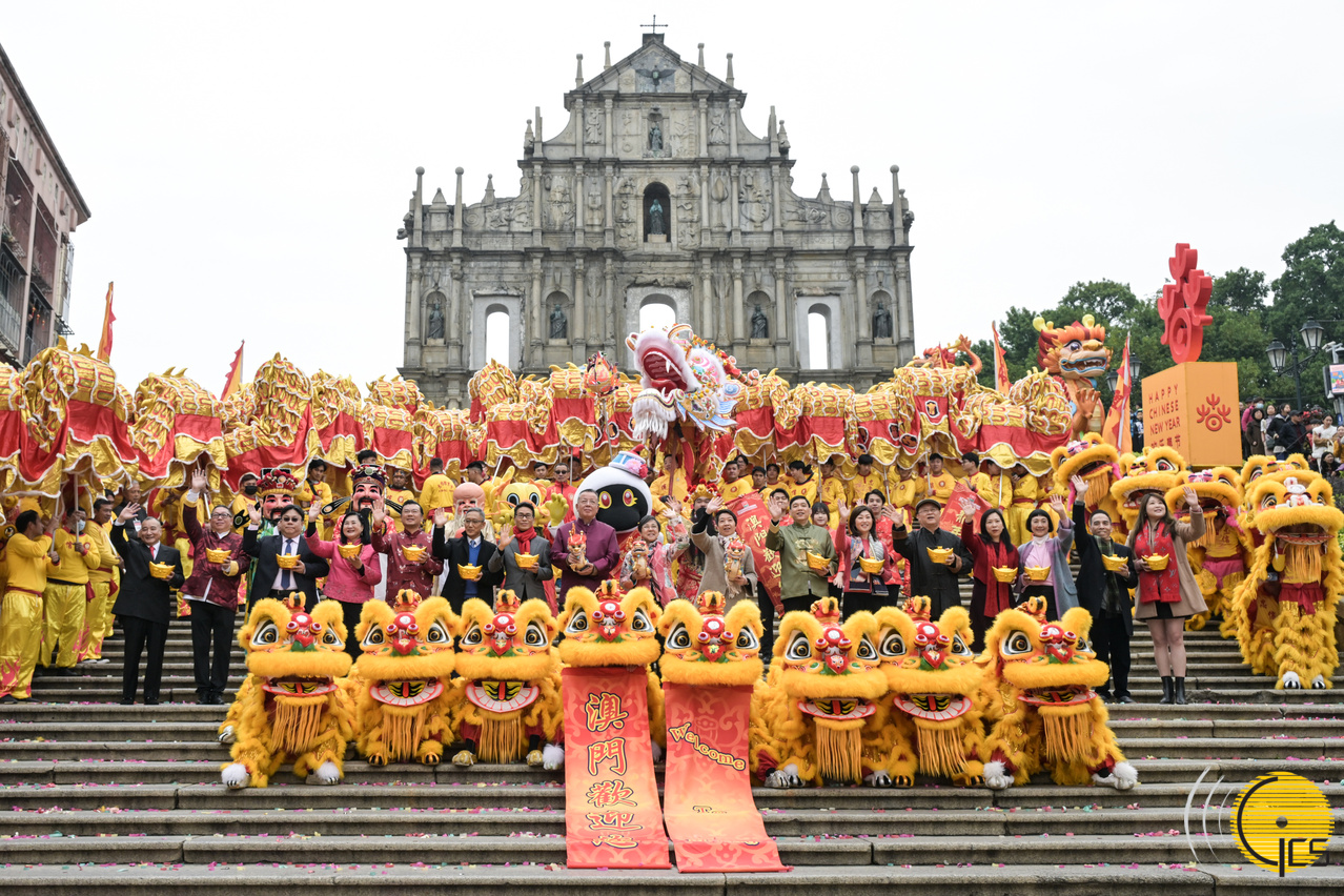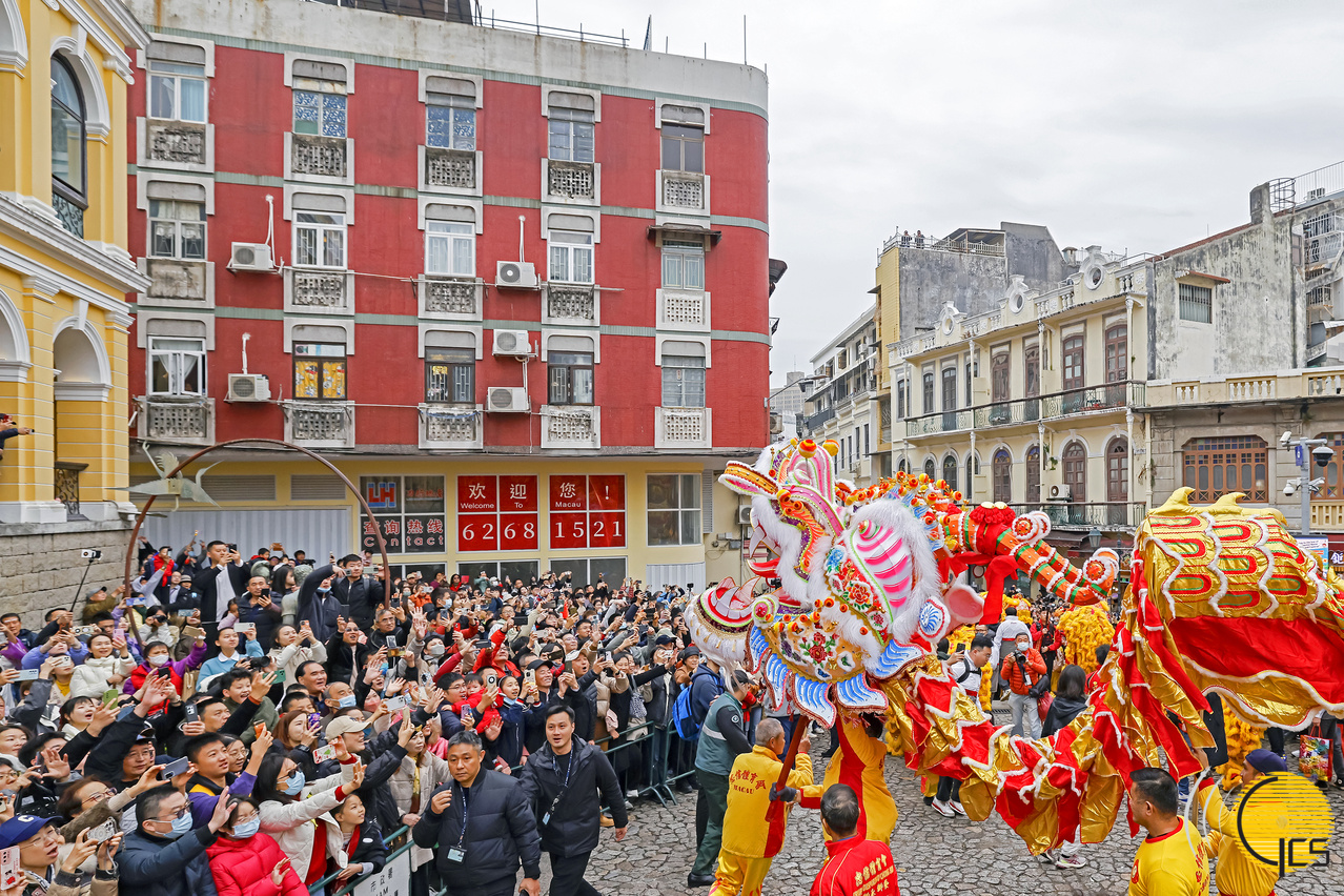 “欢乐春节 ─2024年龙腾舞跃贺新春社区巡演”在大三巴牌坊举行大金龙醒狮巡游起步仪式。