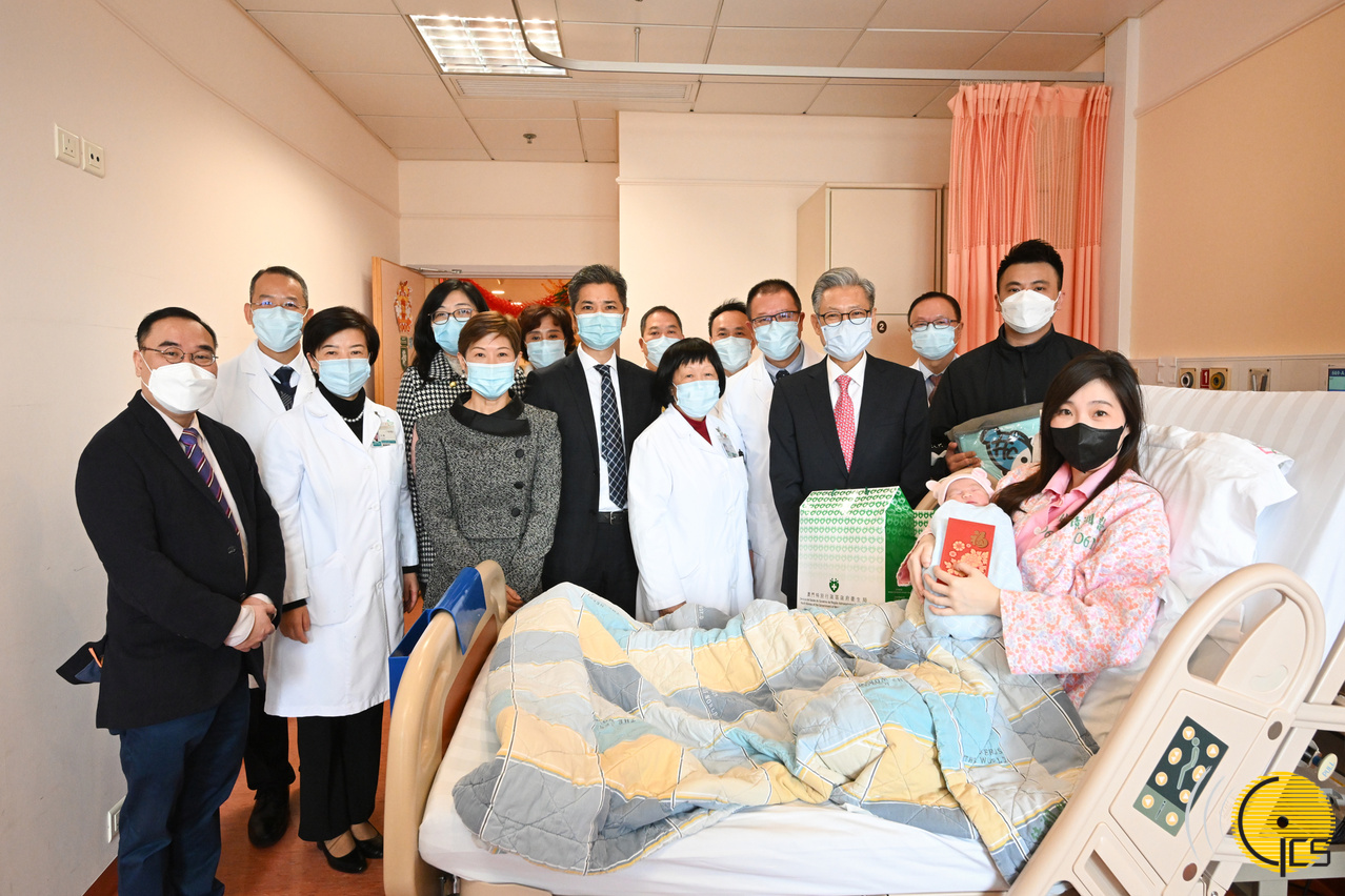 卫生局副局长郭昌宇一行探访踏入甲辰龙年首位在仁伯爵综合医院出生的婴儿,赠送礼物并致以节日问候。