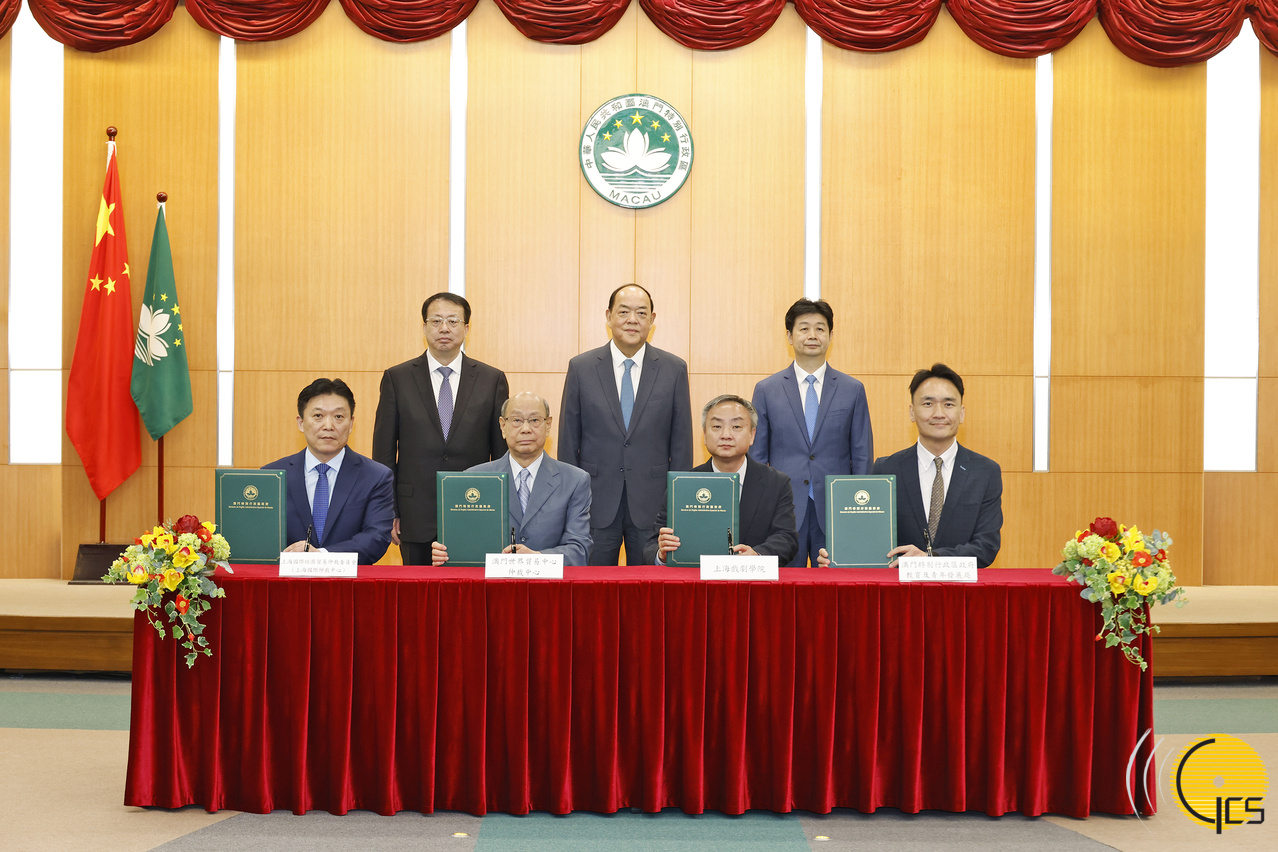 行政长官贺一诚、上海市市长龚正、中央驻澳门联络办公室副主任吕玉印共同见证《上海戏剧学院与澳门特别行政区政府教育及青年发展局深化 表演艺术教育交流合作备忘录》、《澳门世界贸易中心仲裁中心与上海国际经济贸易仲裁委员会(上海国际仲裁中心)合作协议》的签署仪式。