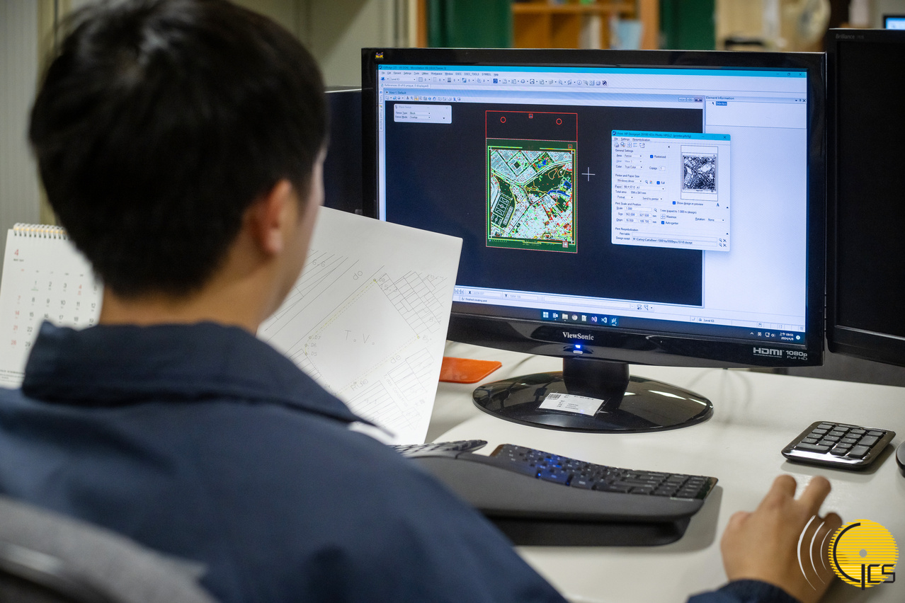 外业测量工作完成后,所收集的地形数据将会交由负责内业数据处理的地形测量员,使用电脑绘图软件并根据标准的制图规范,将仅由数字组成的各点座标进行整合处理,绘制本澳的数码化基础地形图。