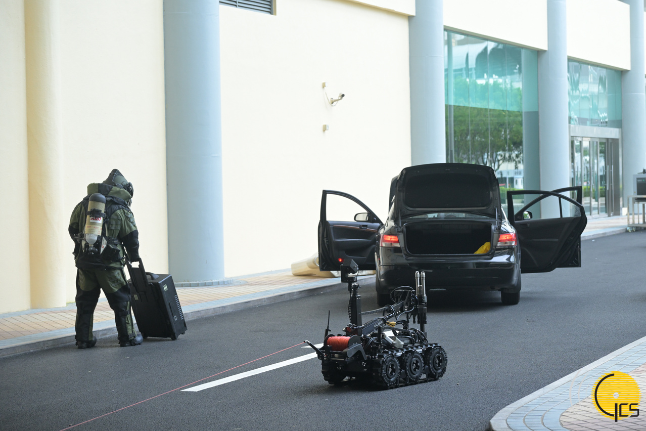 2024年大型联合反恐演练“盘龙” - 治安警察局人员在恐怖分子车辆发现炸弹及进行排爆。