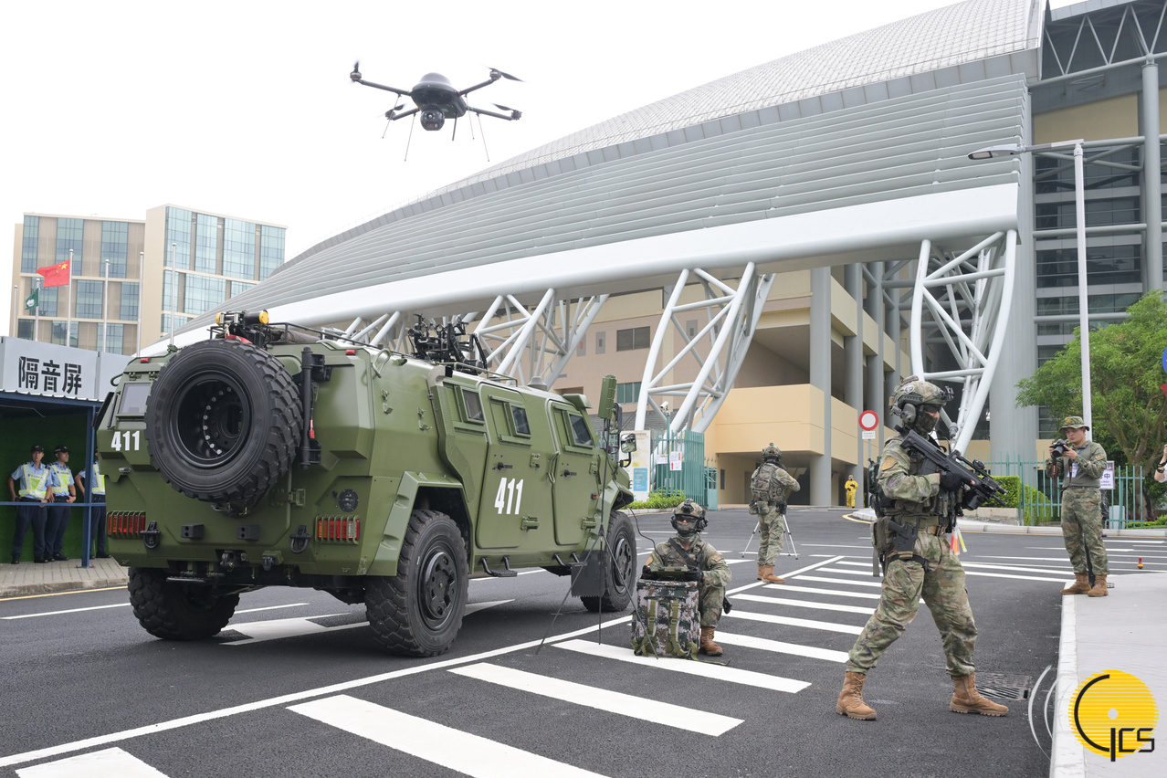 2024年大型联合反恐演练“盘龙” - 警察总局联同中国人民解放军驻澳门部队,并协调多个部门,在澳门东亚运动会体育馆进行代号“盘龙”的大型联合反恐演练,模拟有恐怖分子袭击及挟持观看大型演唱会的观众,跨部门迅速联合开展反恐救援行动。