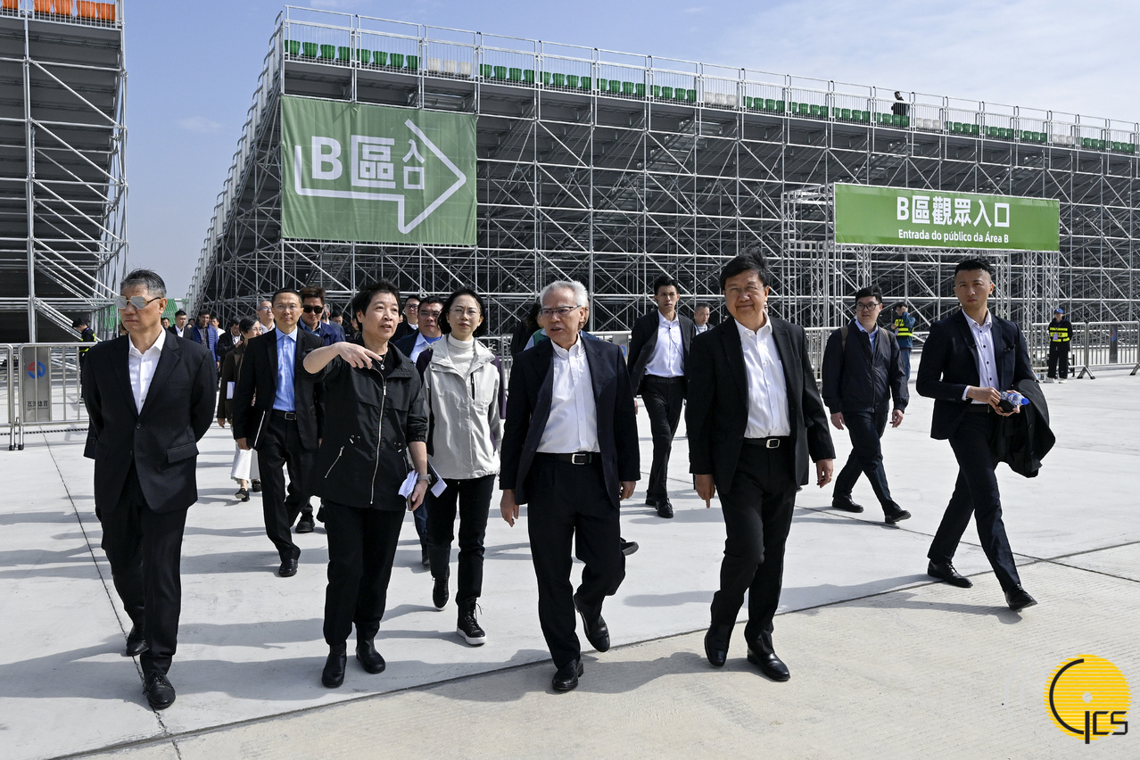 行政长官岑浩辉视察“澳门户外表演区”,了解预热音乐会的人流疏导措施及检视相关演练安排。