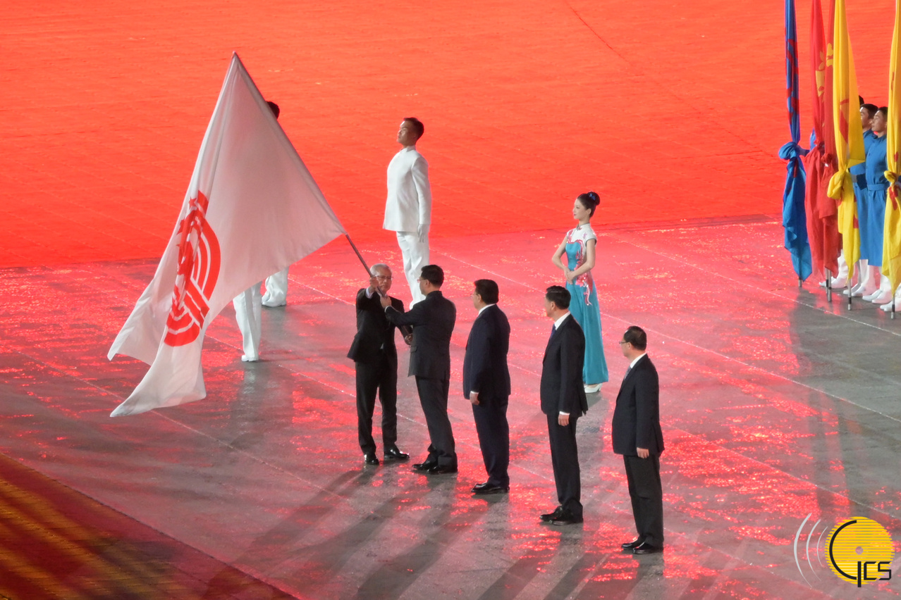 行政长官岑浩辉参与中华人民共和国运动会会旗交接仪式。