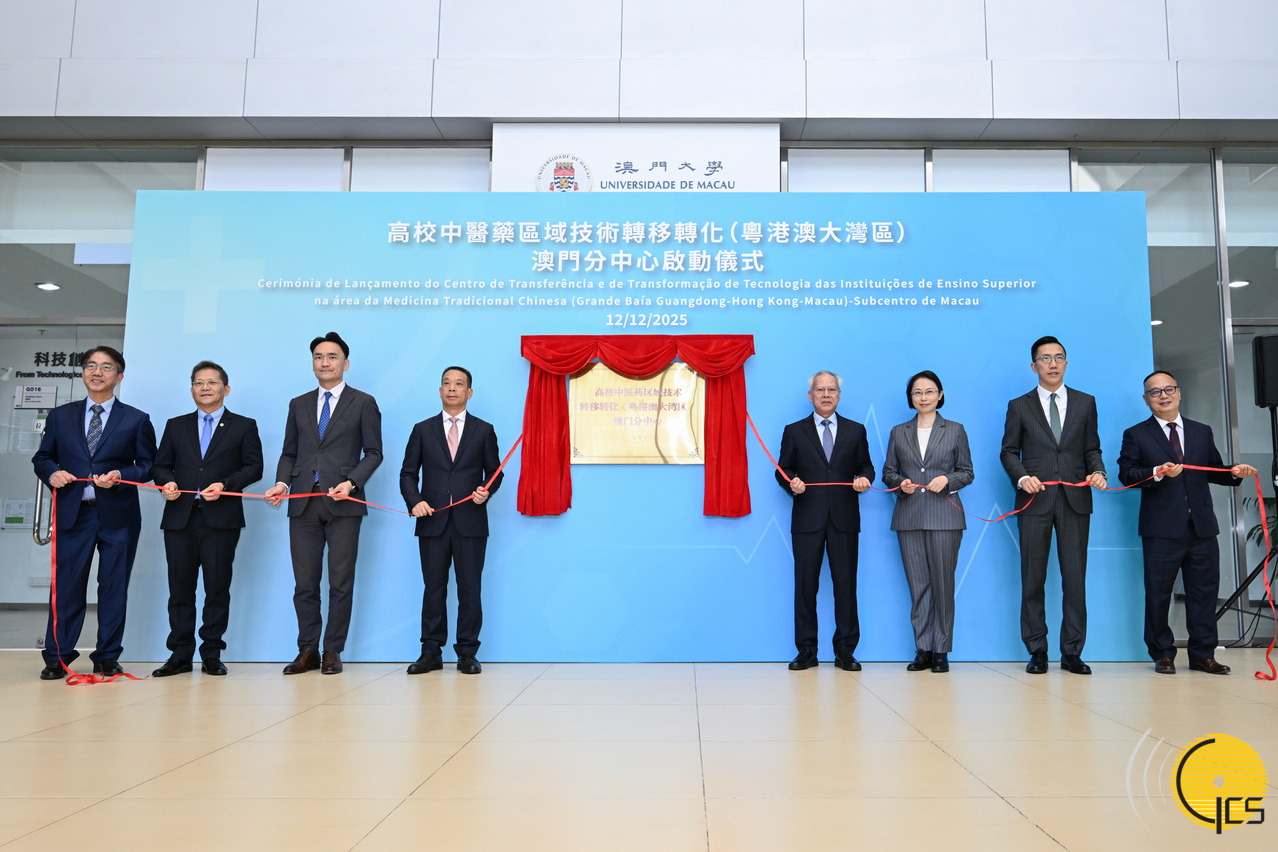 行政长官岑浩辉在澳门大学横琴粤澳深度合作区校区主持高校中医药区域技术转移转化(粤港澳大湾区)澳门分中心启动仪式。